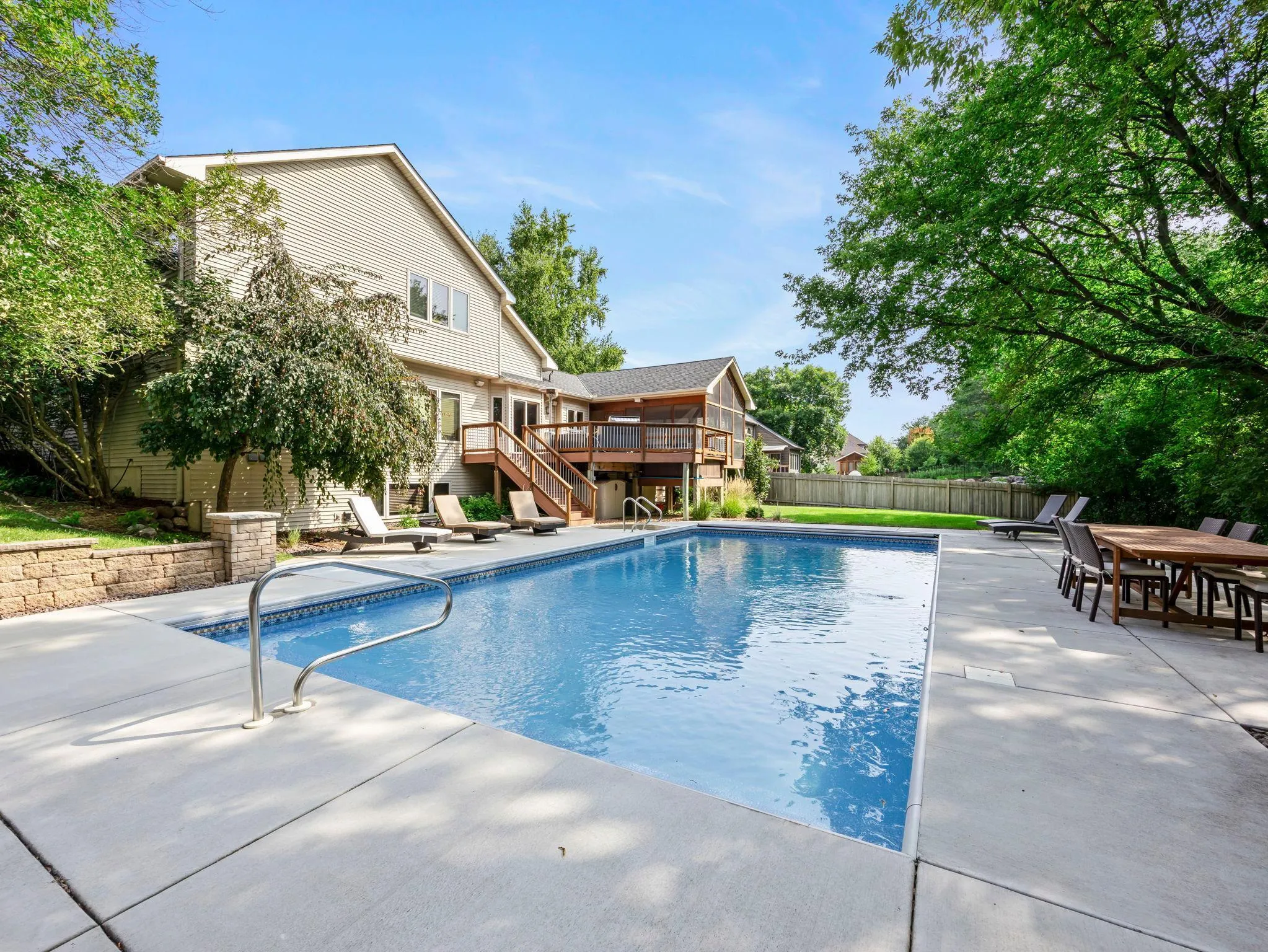 Step outside to your own retreat, complete with a 20×40 ft in-ground pool, relaxing hot tub, and spacious three-season porch overlooking the serene wooded backdrop. Whether you’re hosting summer gatherings or enjoying a quiet evening under the stars, this backyard delivers an unparalleled experience.