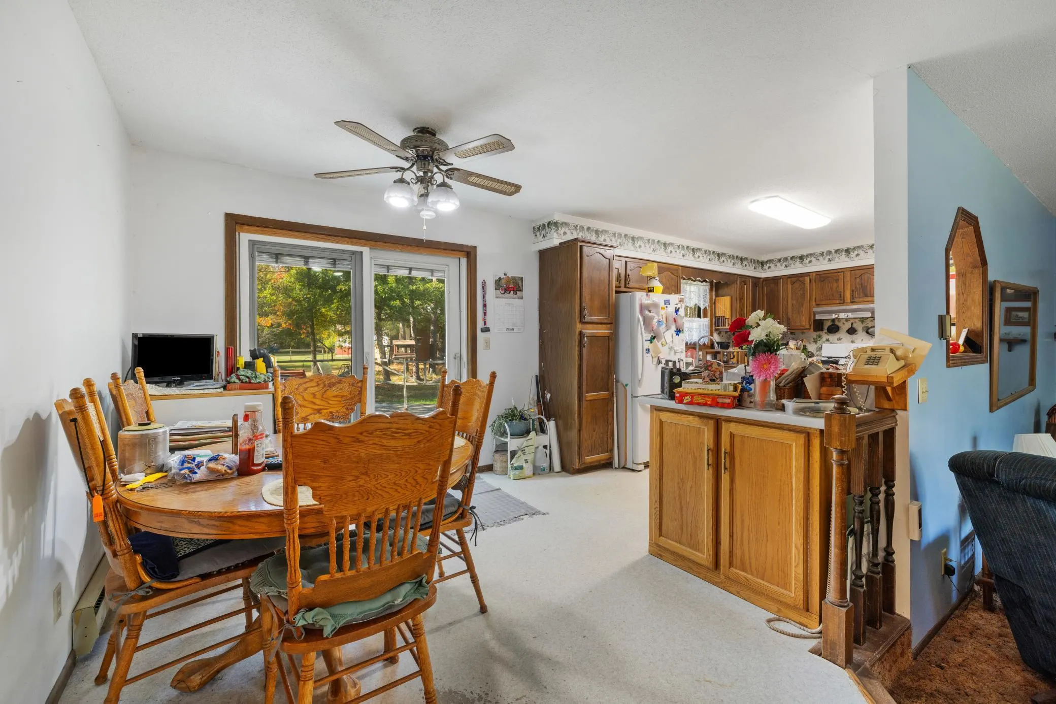 This 4-bed, 2-bath home offers convenient country living just outside of town. The main level features a spacious kitchen, dining, and living area that opens to a backyard deck—ideal for outdoor dining or entertaining. Upstairs includes two bedrooms and a full bath. Situated on a private double lot with 8.36 acres, the property includes an attached double garage, a 28×40 metal building, and a small barn—plenty of space for storage, hobbies, or animals. A great opportunity for space, privacy, and functionality close to town.