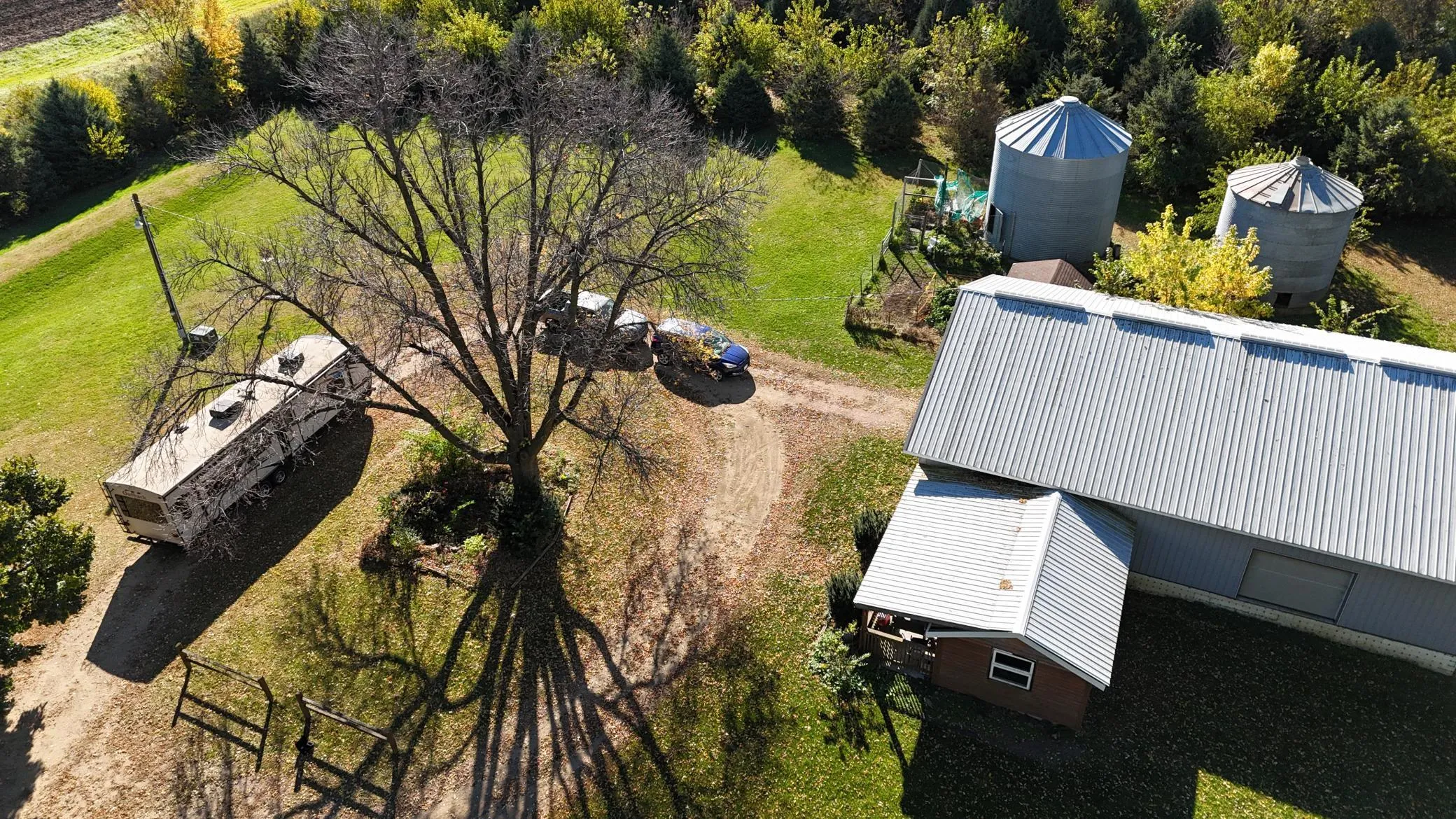 Outside, you’ll find a 40′ x 54′ machine shed with an attached ag office/workshop, a 14′ x 36′ dog kennel, two grain bins, and a charming small cabin—ideal for a home office, guest space, or relaxing man cave. A compliant septic system and rural water access add peace of mind and modern convenience.