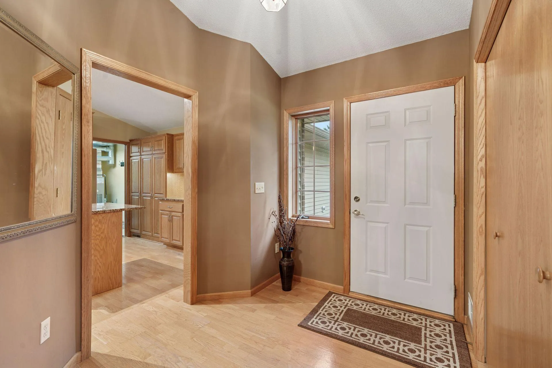 Stunning One-Level End Unit Townhome with Pond at rear. Enjoy peaceful living in this beautifully maintained end-unit townhome, perfectly situated in a quiet Brooklyn Park neighborhood overlooking a serene pond. This spacious home features a bright and open split-bedroom floor plan with vaulted ceilings and abundant natural light. The welcoming foyer leads into a generous living area, seamlessly connected to the dining room—which offers scenic views of the patio and pond. The adjacent kitchen boasts ample cabinetry, stone countertops, stainless steel appliances, and a skylight. A laundry and mudroom conveniently sit just off the kitchen. Relax by the gas fireplace in the cozy family room, complete with large windows and patio access. A den or office space adjoins the family room. The guest bedroom and full second bath are located near the dining area, while the private primary suite is tucked away on the opposite side of the home. The primary bedroom has a large walk-in closet. In-floor heat in primary bathroom. Additional highlights include an attached 2-car garage with pull-down stairs to a 10 x 13 attic storage. The development has a well-managed, self-funded homeowners association. Don’t miss your opportunity to own this exceptional home—schedule your showing today!