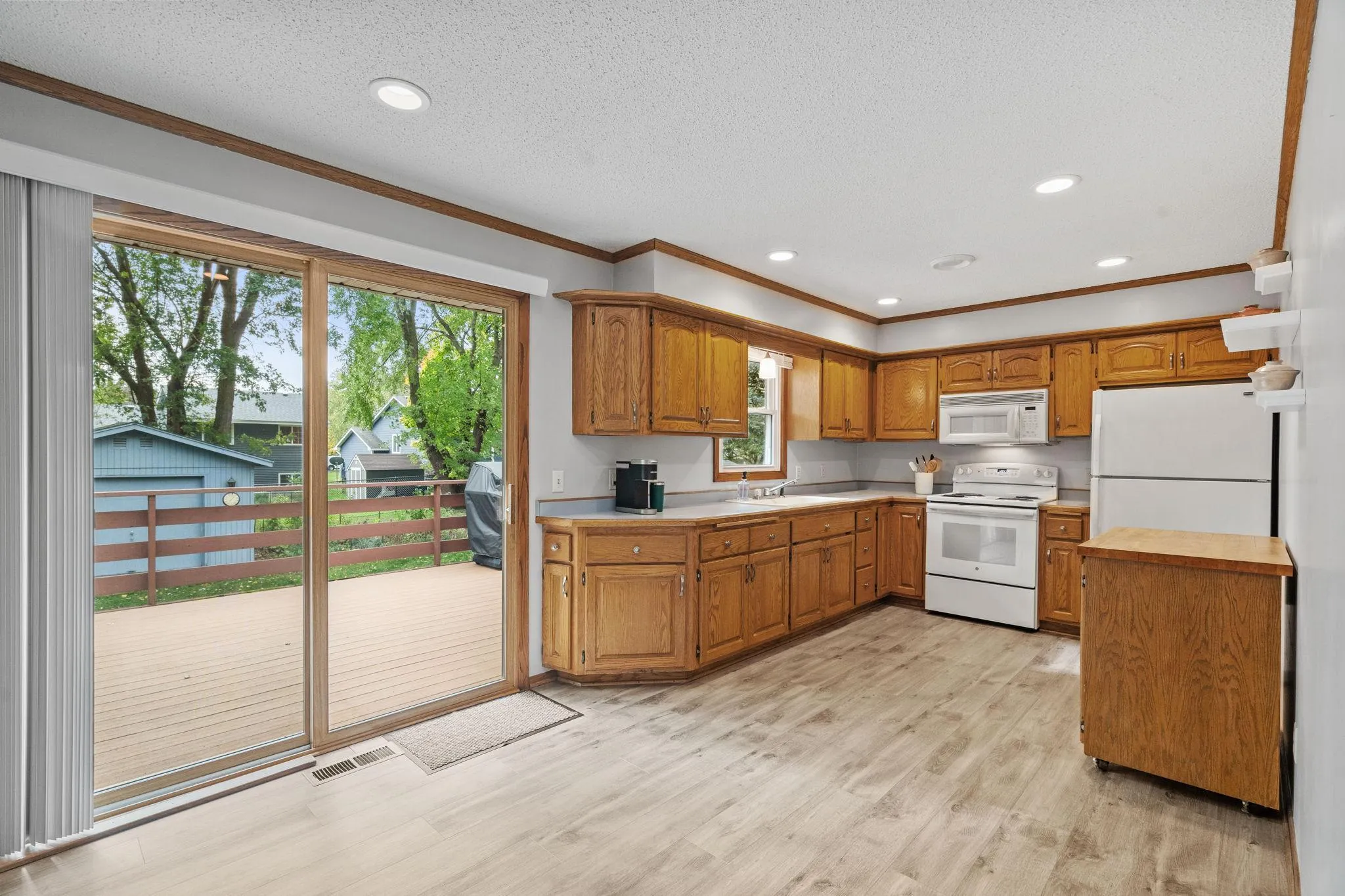 Welcome to this charming split-level home in the heart of Champlin, featuring 3 spacious bedrooms and a finished lower level perfect for additional living space or entertaining. Enjoy cozy evenings by the fireplace or host guests on the large deck overlooking a beautifully landscaped backyard. The dining room includes a built-in buffet, offering both style and functionality for everyday meals or special occasions. This home blends comfort and convenience, inside and out.