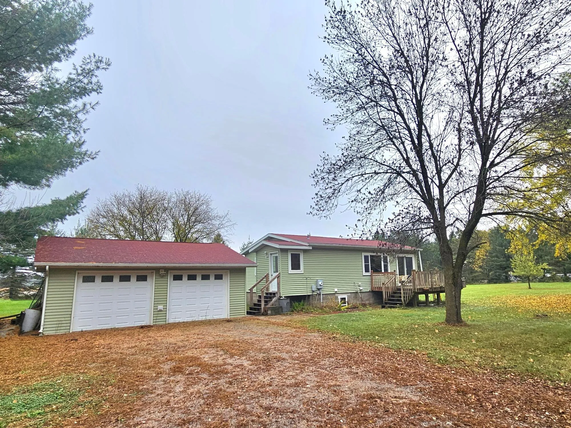 Beautiful country setting for this home nestled on this nearly 2-acre lot only minutes from town featuring 3 bedrooms, 2 bathrooms, office, family room, living room, dining room, 2 stall 24×26′ heated garage, plus additional 1 stall garage to accommodate all your storage. You will enjoy sitting on the front deck overlooking Pine Lake surrounded by mature trees. The block foundation is from 1992 and home has many updates over the years including newer electrical, windows, plumbing, steel siding, forced air furnace and AC. Main level was being remodeled with kitchen cabinets, trim, base boards and panel doors purchased and waiting to be installed by new owner. This property has endless potential and in overall good condition needing the finishing touches. You will appreciate this ideal location on an impressive lot you will enjoy for years to come.