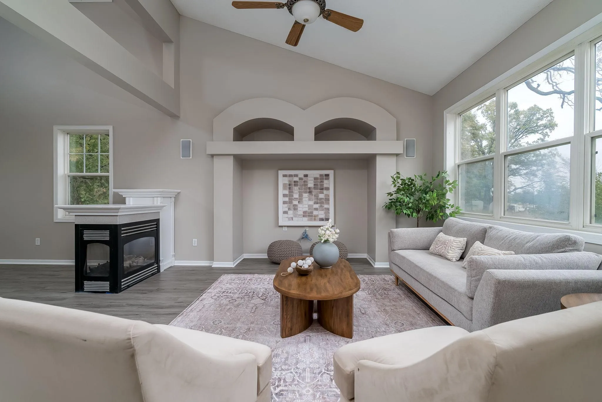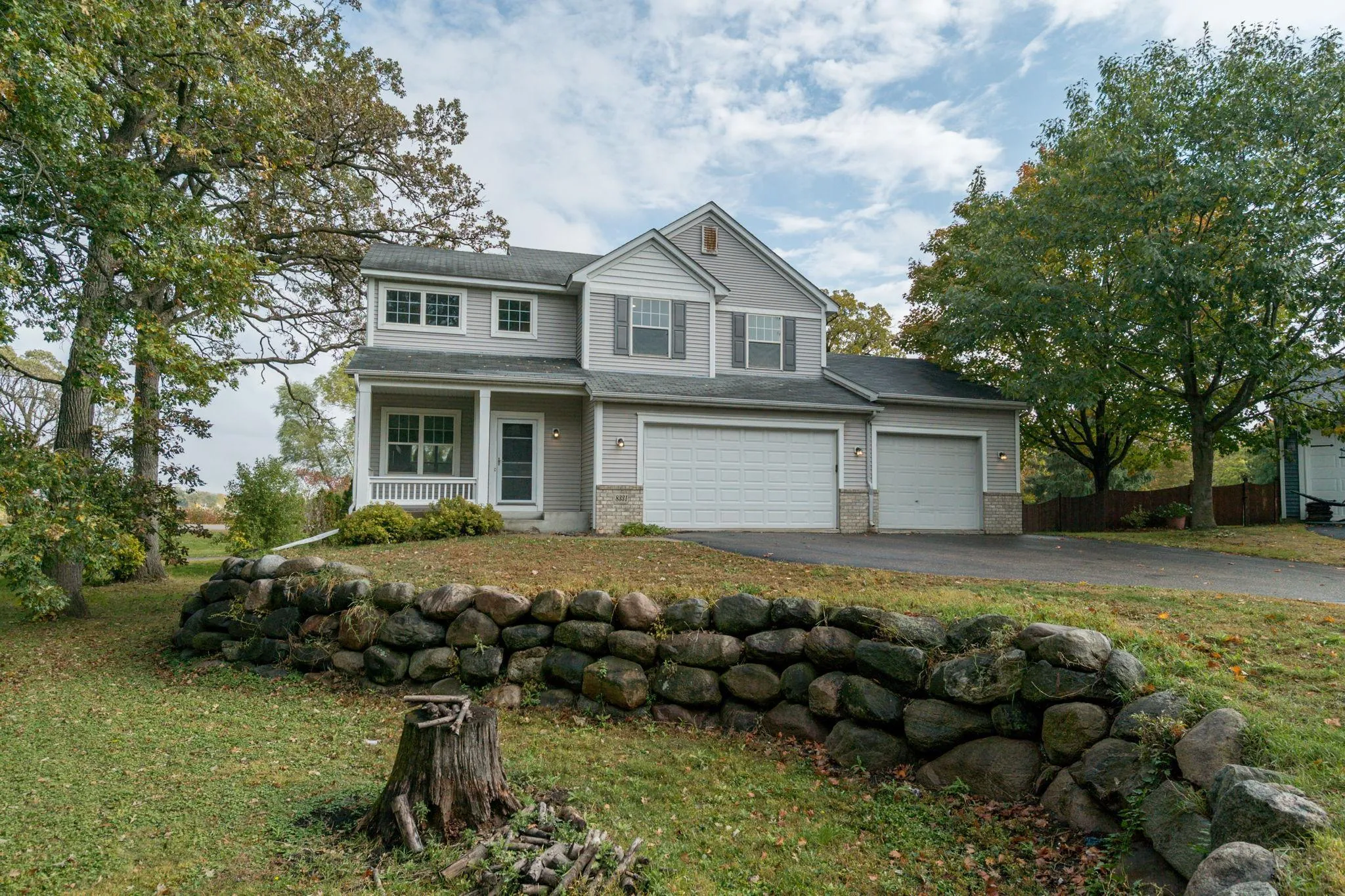 From the moment you arrive, this beautifully updated two-story home impresses with its inviting covered front porch and spacious layout designed for comfortable living. Step inside to find fresh paint, new flooring, and stylish light fixtures throughout. The vaulted ceiling on the main level adds an airy feel, while the double-sided fireplace creates a warm connection between the front living room and rear family room. The kitchen is a true highlight, featuring all-new cabinets, granite countertops, stainless steel appliances, and a center island with breakfast bar—perfect for everyday meals or entertaining. Sliding doors from the dining area lead to a large deck overlooking a tree-lined, private backyard where you can relax and unwind. Upstairs, you’ll find three bedrooms including a primary suite with a walk-in closet and beautifully updated bath. The finished lower level adds even more space with a rec room, 4th bedroom, full bath, and storage. With a new furnace and A/C (2025) and an attached 3-car garage, this home has everything you’ve been looking for—space, updates, and privacy.