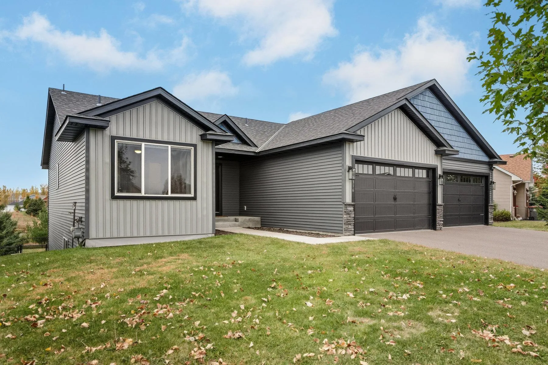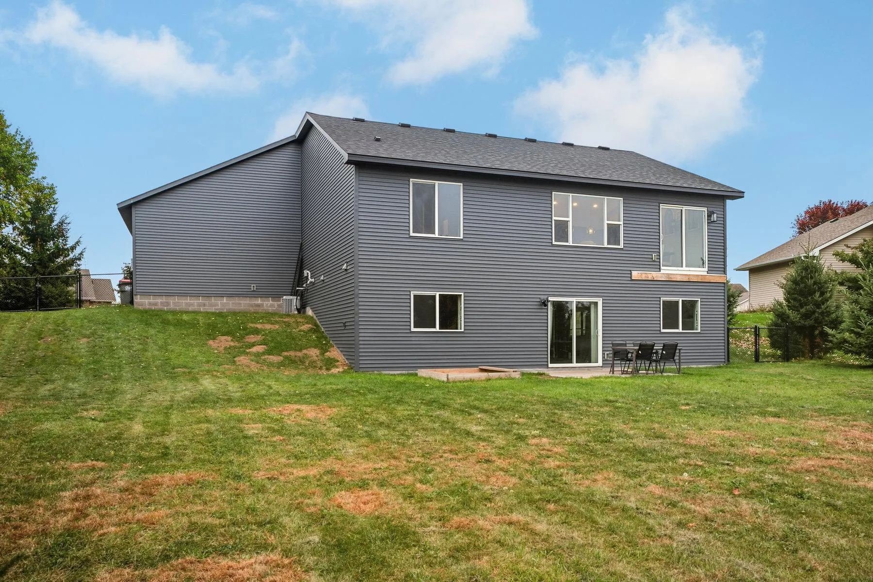 Flooded with natural light and high-end finishes, this like-new Cambridge rambler is the perfect place to call home?, why build when you can move in now? Built in 2021, this open and inviting floor plan features LVT flooring, vaulted ceilings, and a seamless flow between the kitchen, dining, and living spaces, ideal for entertaining! The kitchen showcases knotty alder cabinets, quartz counters, and slate stainless steel appliances, while the primary suite offers a spacious walk-in closet and private bath with granite counters. Head downstairs to the walkout lower level awaiting your finishing touches, complete with a rough-in for ?an a?additional bathroom? and room for another bedroom. Step outside to a private fenced in backyard with serene pond and tree views?. This home is the perfect space to relax, play, or entertain?!