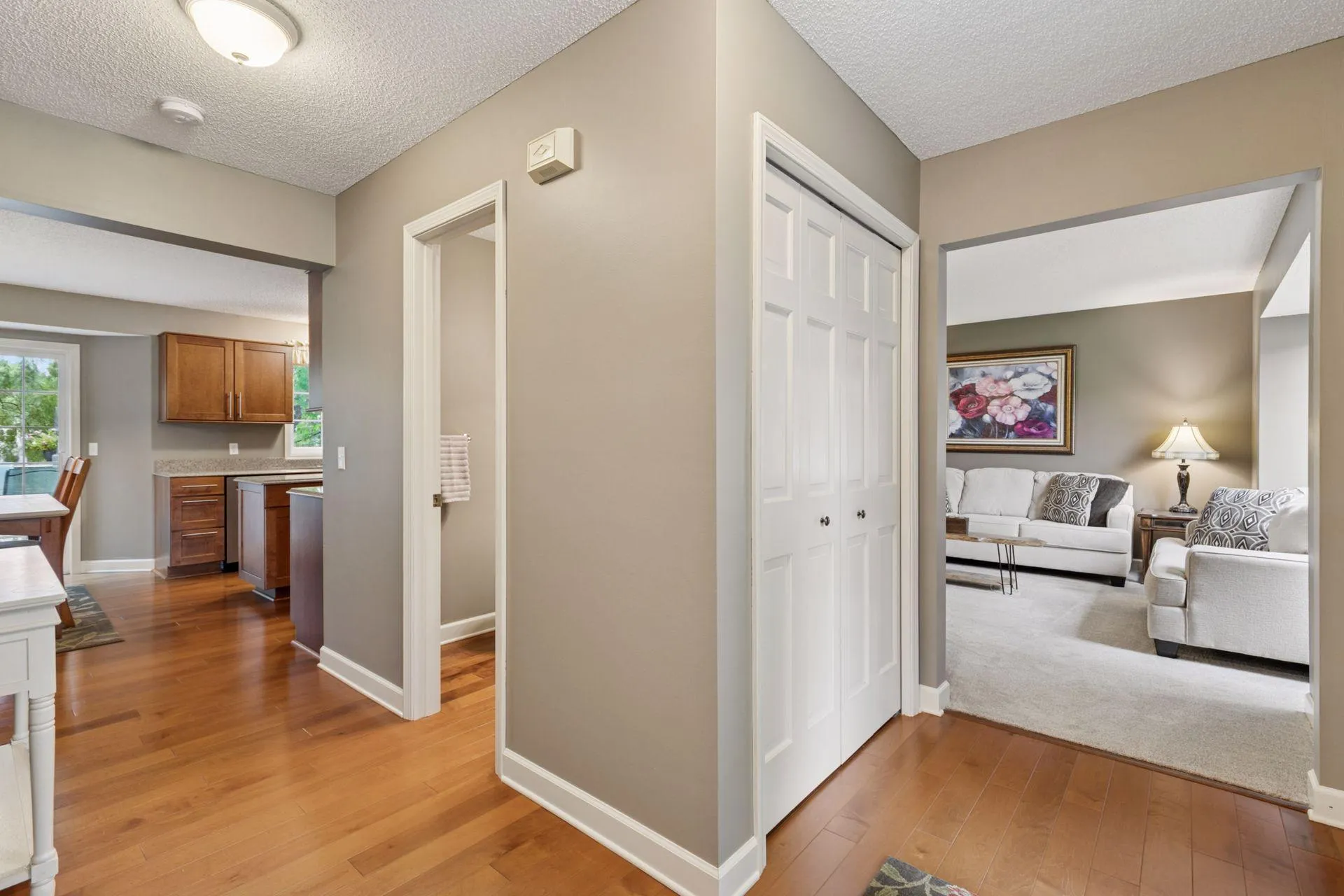 Spectacular Savage home with scenic ponds views and perfectly nestled in one of the area’s most desirable neighborhoods, Summit Ponds! Welcome home to this impeccably maintained 4-Bed / 4 Bath, Two-story featuring a long list of standout updates. It offers the perfect combination of style, functionality, and a great location—with convenient access to shopping, dining, parks, and top-rated schools. The main level boasts an updated kitchen equipped with stainless steel appliances, quartz countertops, and custom maple cabinetry—ideal for both casual living and entertaining guests. The inviting living room showcases a cozy gas fireplace and expansive windows overlooking the private backyard and serene pond. The upper-level features generously sized bedrooms, including a primary suite complete with a walk-in closet, a beautifully appointed en-suite bath with jacuzzi tub and double sink vanity. Retreat to the fully finished walkout lower level which is a standout with its spacious family room, a stylish bar area, and a dedicated exercise room—easily adaptable as a fifth bedroom, office, or guest suite. Step outside to an entertainment-sized deck, perfect for dining or relaxing while taking in serene nature views. Quality craftsmanship is evident throughout, with recent upgrades including solid core, 6 panel doors and new enameled trim beautifully accenting the engineered hardwood flooring. Additional highlights include a cozy gas fireplace on the main level, contemporary color palette throughout, and a private backyard patio with serene views of mature trees. This is a rare opportunity to own a move-in-ready home in a premier location! Seller is providing a 1 year home warranty at closing.