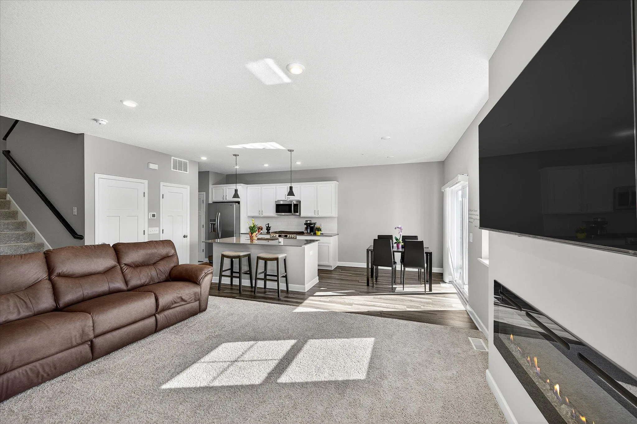 Exceptional 2023 newly built Skye Meadows two-story townhouse by Lennar Homebuilders. Offering an open, sun-filled main level with luxury plank laminate floors, vaulted ceilings, electric fireplace & maintenance-free deck overlooking a beautiful community nature preserve. Kitchen features slate grey stainless energy star appliances, large Quartz center island with undermount sink, subway tiled backsplash & pantry closet. Convenient main level half bathroom, mudroom & attached insulated garage. Upper level includes a massive owner’s suite with walk-in closet, en suite bathroom with double vanity sinks & walk-in shower. Two additional spacious bedrooms, full bathroom & laundry room complete the second floor. Home also includes fire suppression sprinkler system throughout home + garage, washer/dryer & water softener (which do not come standard with Lennar’s newly constructed homes). Rare opportunity to build instant equity by finishing the lower level – an added family room, bedroom & bathroom are all possible. As most neighboring homes are built on cement slabs & don’t provide a basement option. Bring your visions to life & enjoy this absolutely stunning home for years to come. Sellers are highly motivated & open to negotiating offers.