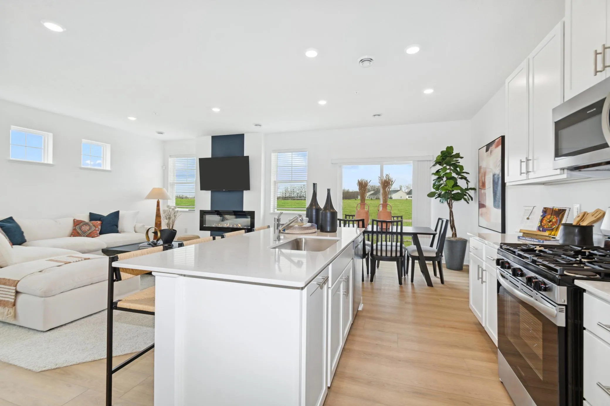 This end-unit is available for a December closing date! Step into the end-unit Raleigh, where modern design and functionality come together seamlessly. The open-concept main level boasts 9-foot ceilings and a flowing layout that effortlessly connects the kitchen, family room, and dining area—perfect for gatherings. The kitchen is a showstopper, featuring sleek white cabinetry, quartz countertops, stainless steel appliances, a gas range, a spacious center island, and a chic tile backsplash. For added ease, blinds are already installed. Upstairs, you’ll find 3 bedrooms, 2 baths, and a convenient laundry room. The primary suite serves as a relaxing retreat, complete with a private bath and an expansive walk-in closet. Additional features include a two-car garage and a charming patio. Situated near walking paths and trails, with quick access to shopping, dining, and Highway 169, Summerland Place offers the lifestyle you’ve been looking for!