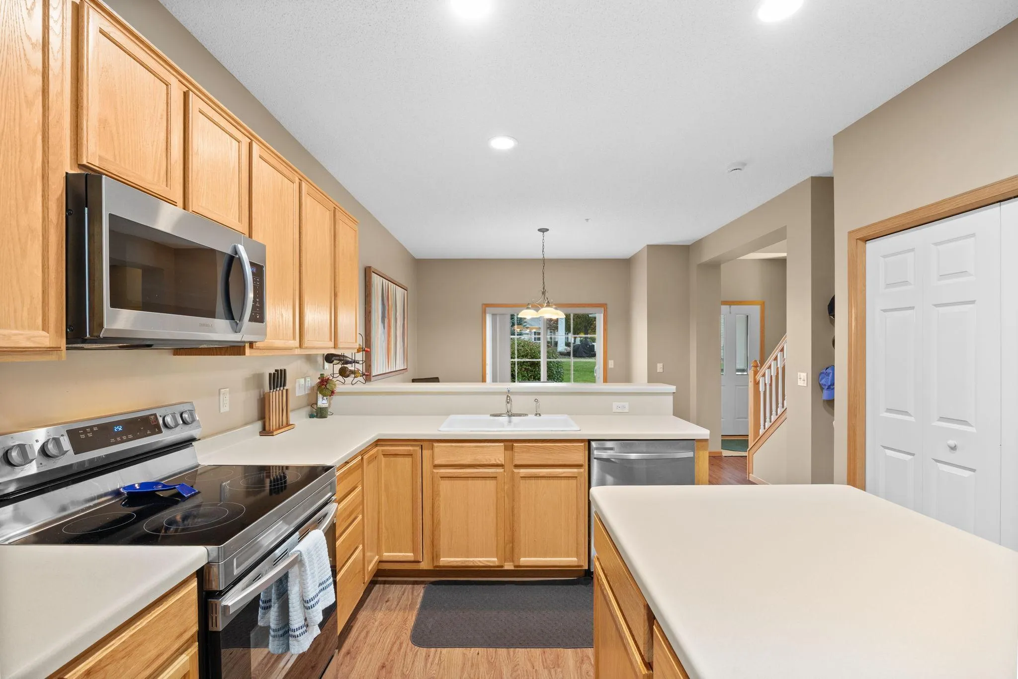 Stunning 3BR/3BA end unit townhome ideally situated minutes from schools, parks, shopping, and Hwy 212. The main level boasts a large living room with ample natural light, a spacious kitchen with stainless steel appliances, and a convenient half bath. Upstairs, enjoy three generously sized bedrooms, laundry, and a versatile flex space. The sizable master bedroom includes an en-suite bath with a separate tub and shower. The furnace, air conditioner, and hot water heater have been updated in recent years. Don’t miss this opportunity!