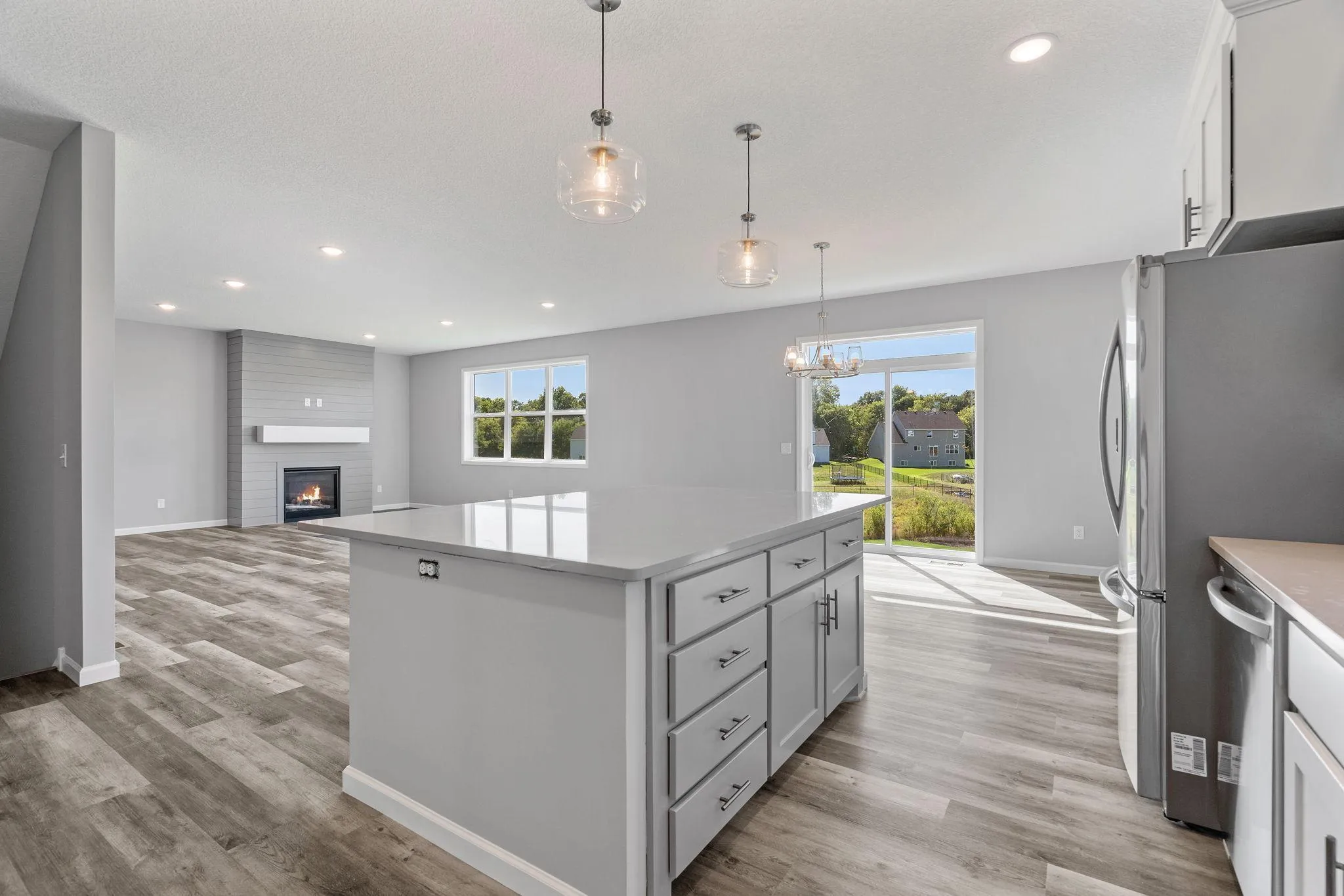 Welcome to this stunning two-story home with a fully finished lookout basement, beautifully situated on a picturesque lot! A spacious front porch invites you inside, where you’ll find an open-concept layout enhanced by over-sized windows and gorgeous Luxury Vinyl Plank wood flooring throughout the main level.