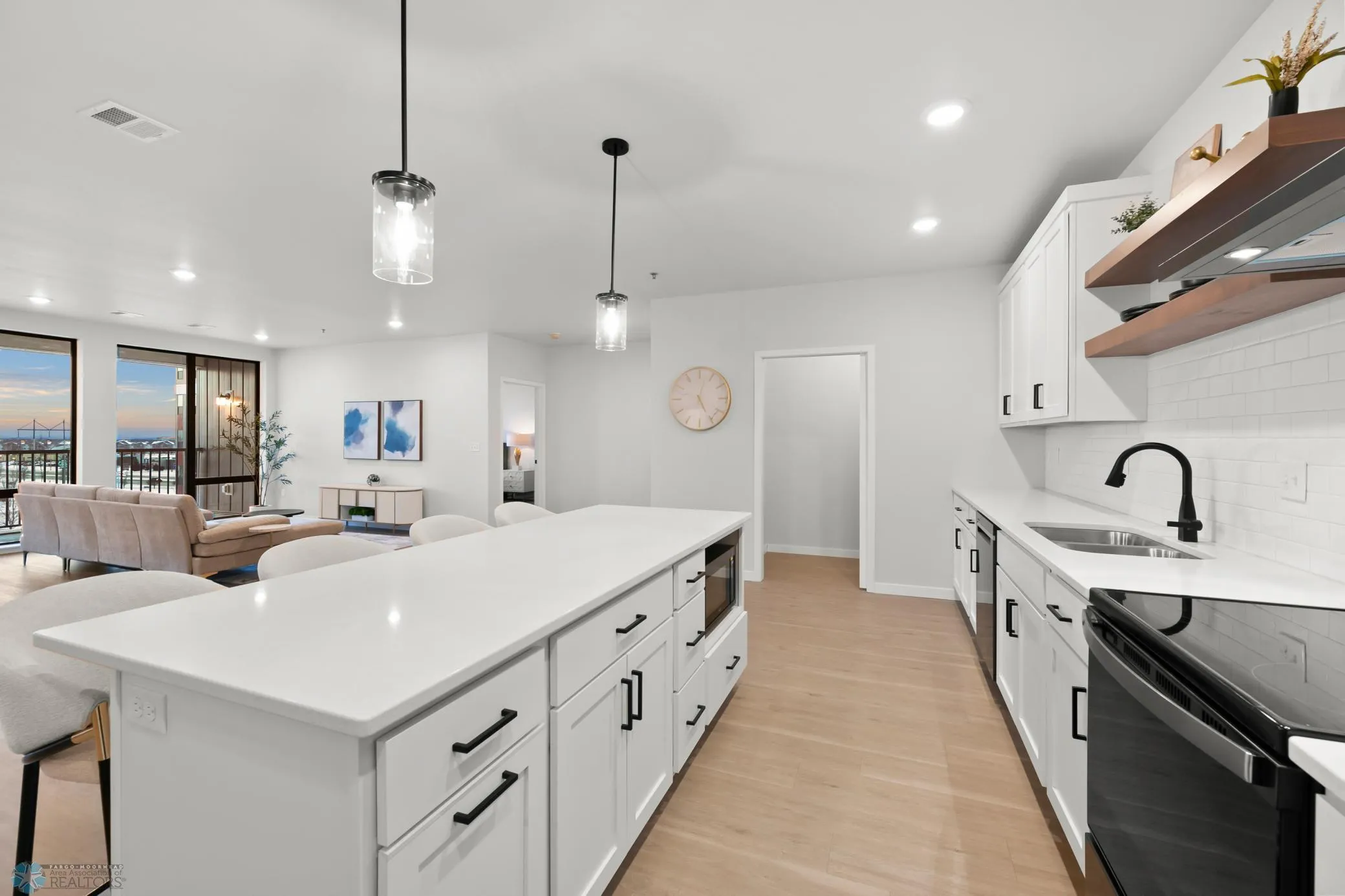 Welcome to MAKT condos! Here’s an exclusive opportunity to own a brand new, luxury 2 bedroom, 2 bathroom condo in the heart of Fargo! Located on the 6th floor with breathtaking views of the Fargo skyline and an unbeatable location, you can walk to your favorite neighborhood restaurants and coffee shops or take a short drive to shopping and entertainment! This spacious 1,895 sq. ft. condo boasts an open concept living space, bathed in natural light from floor-to-ceiling windows, and features high-end finishes throughout. You’ll love the expansive south-facing balcony, perfect for hosting and entertaining. The primary bedroom offers spectacular views, a walk-in closet, and an en suite bathroom with a soaking tub, double sinks, and a tile shower. For added convenience, the condo includes two heated underground parking spaces. Residents have access to the second-level community room, fitness center, mini market, and more, enhancing the luxury living experience. Welcome to your next home! Units are complete and move-in ready!