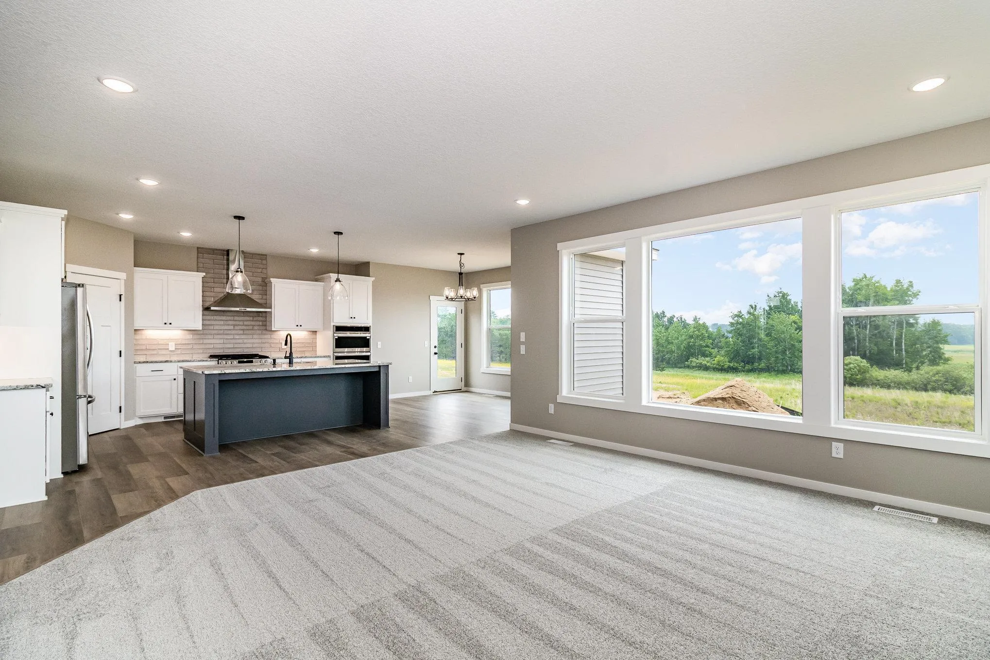 Welcome home to “The Northbrook II” built by TH Construction of Anoka, your local custom builder. This home sits on 2.05 acres in Ham Lake, Blaine Schools! As you walk into the home you are greeted by a large open concept layout, enhanced by large windows! The kitchen is a chef’s dream with tons of custom cabinets and a large center island finished with quartz countertops. Connected is a beautiful dining room and a large family room with tons of natural light and a gas burning fireplace with real stone surround! This main floor also consists of a den/flex room, a half bath, and mudroom, connected to the oversized 4stall garage. Take a walk upstairs to the alluring primary suite with vaulted ceilings and a walk in closet. The primary bathroom consists of a double bowl vanity and a walk in tile shower! The upper level also includes 3 additional bedrooms, large full bathroom with 2 separate vanities and a laundry room! The Basement is unfinished but with potential for a 5th bedroom, 4th bathroom, and a spacious family room.