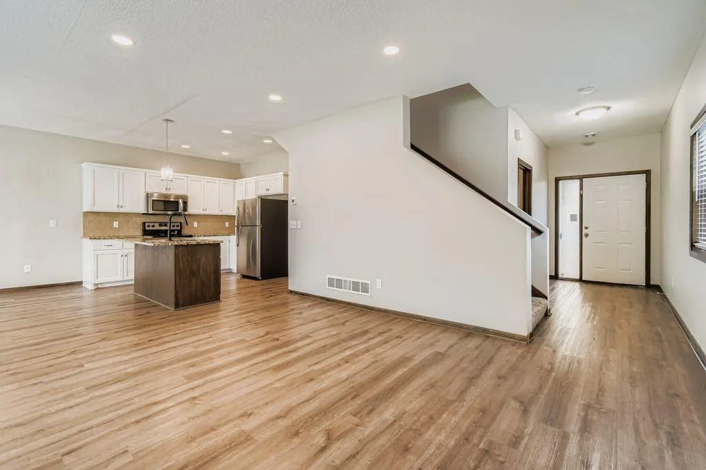 Welcome to River Valley Commons. This charming Burnsville community is the perfect place to enjoy the ease of townhome ownership. Imagine a winter where you don’t need to shovel your driveway. Instead, you can sit inside in front of the enchanting gas fireplace and watch the glistening snowflakes fall lazily to the ground. Head to your spacious kitchen with Maple center island & classic white cabinets & a pantry and make a steaming cup of hot cocoa while enjoying the look of your stainless appliances. A covered patio with a privacy wall gives you the opportunity to grill throughout the year just steps from your kitchen. The patio door and substantial windows throughout the main level ensure a bright and sunny disposition year round. The living and dining room layout lets you decide how much space you’d like to dedicate to each area. Set a table for 20 with a cozy couch space or bring in a huge sectional perfect for movie night for the whole family and make dining a more intimate affair. A spacious foyer is beautifully situated without a direct line of sight into the home and flows into a tidy, hidden office space ready for your zoom meetings. A tucked away half bath ensures privacy for your guests. A sleek stairwell leads you up to the sleeping space where an enormous owner’s suit spans nearly half of the second story. A walk-in closet and full bath with a soaking tub, tile shower and double sinks feels like a spa day. The stairwell and laundry room separate the master bedroom for the rest of the upper level. There are also two additional matching bedrooms, both with walk-in closets and a second full bath. A 2 stall garage, several mature trees and covered front porch are just a few more bonuses you’ll find here. Welcome Home!
