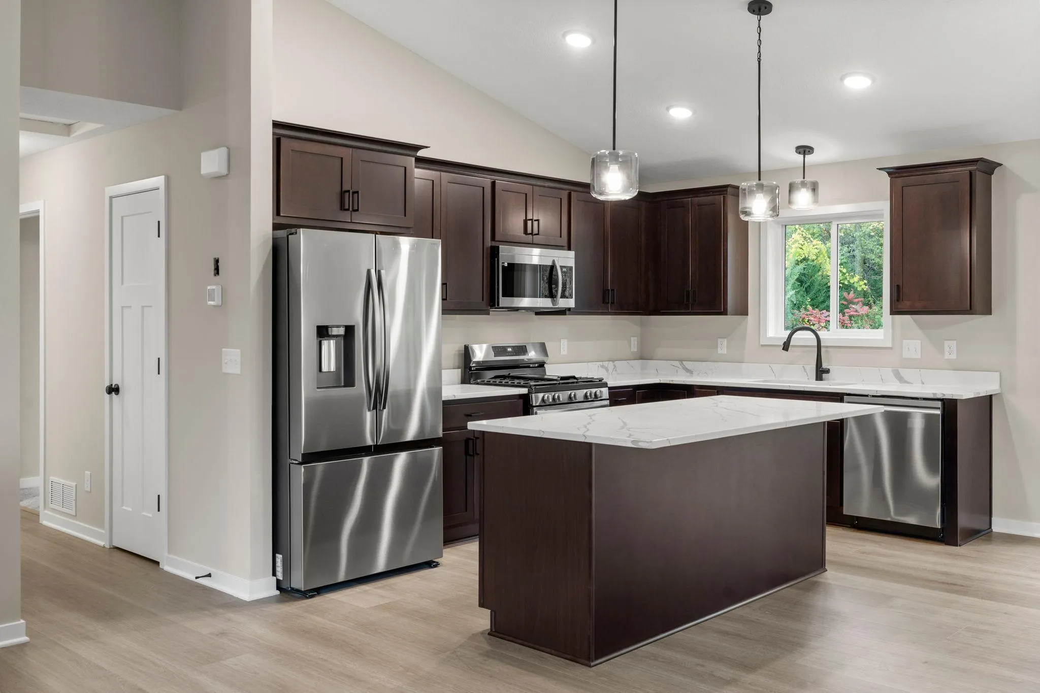 This brand new 4 bedroom, 3 bathroom, 4-car garage home features an open floor plan and a vaulted ceiling in the living, dining, and kitchen. The kitchen boasts laminate floors, dark or white cabinets, an island, pantry, granite countertops, and upgraded stainless steel appliances. The owners suite includes a private bathroom. The finished walk out lower level offers a family room, two additional bedrooms, and a full bathroom. The property is perfect for those who are looking for a brand new home with plenty of space and modern features. Don’t miss your chance to own this fantastic property!