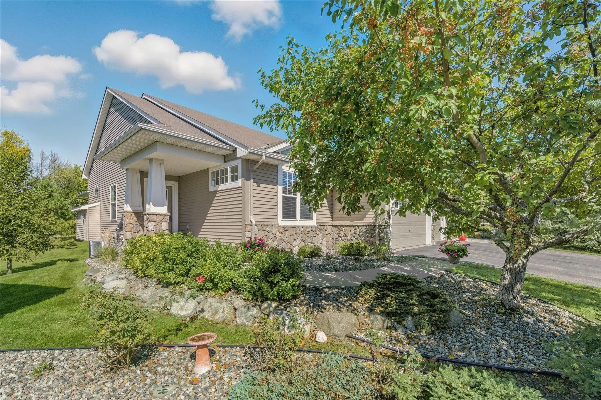 convenience for most anyone. Vaulted ceilings, bright beautiful sunroom, expansive gourmet kitchen, office/bedroom, primary bedroom suite, Living and dining room and laundry room round out the main level. The lower walk-out. level has plenty of pace with large family room, rec room, two additional bedrooms, 3/4 bath and tons of storage. You will love the privacy this home offers with no neighbors behind you and smaller community with a park within steps from your home. This Lundgren built home is quality throughout! With custom window treatments, quality flooring, solid stone counters, sunroom and new composite deck … it