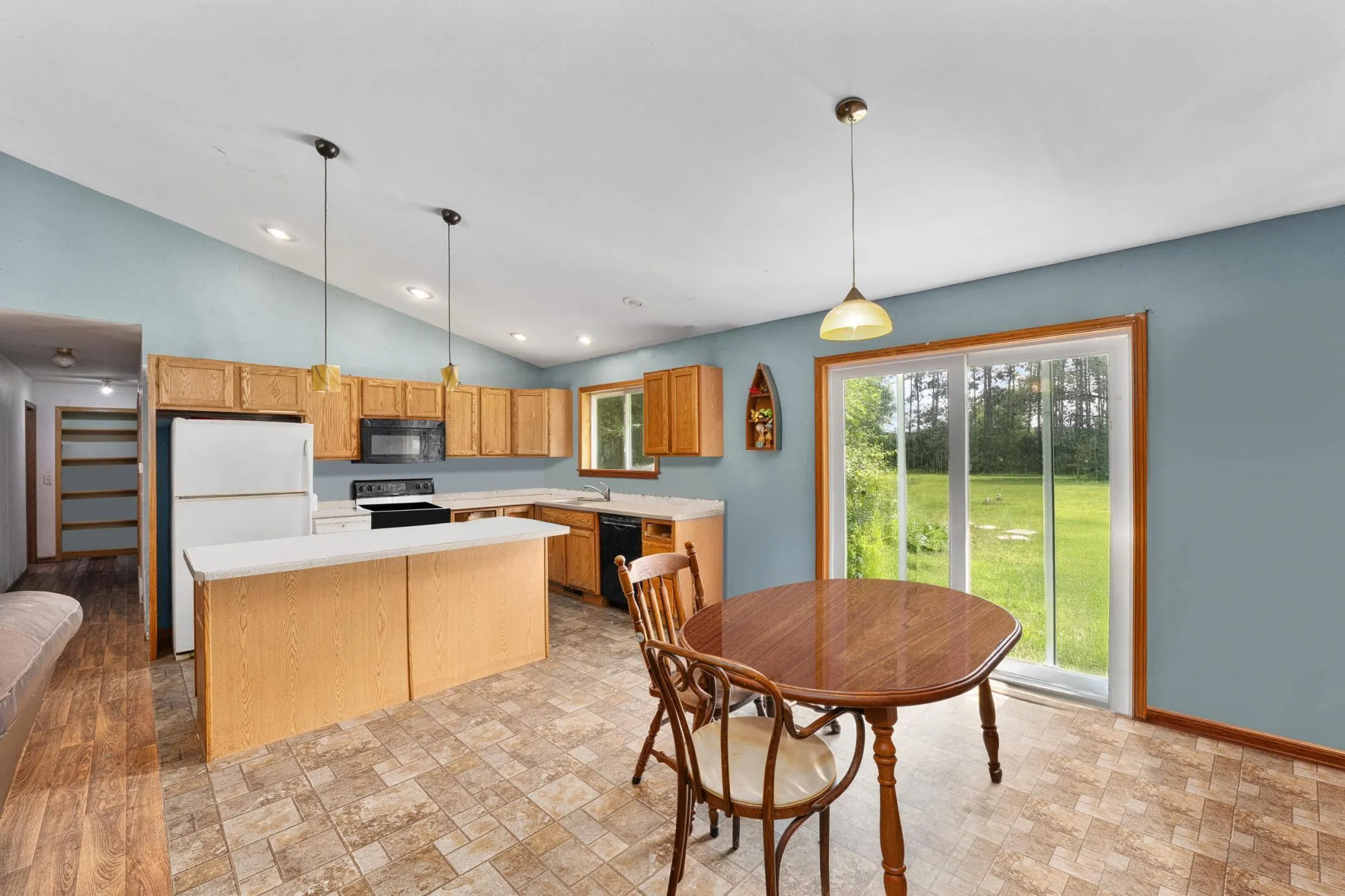 Charming ranch home nestled on 1.75 acres of serene wooded surroundings. Enjoy an open, spacious floor plan featuring a great room with a dining area and sliding doors that open to a future deck space. The fully finished lower level boasts a rec room with a bar and an additional bedroom. Includes a two-car detached garage with a workshop area in the back. Plus, a 2+ car pole shed for extra vehicles or storage. Photos edited to show home as it would appear with personal property removed. Home is being sold “As is”. Seller will be replacing toilets and doors throughout and section of sheet rock in basement. New well pump in 2024.
