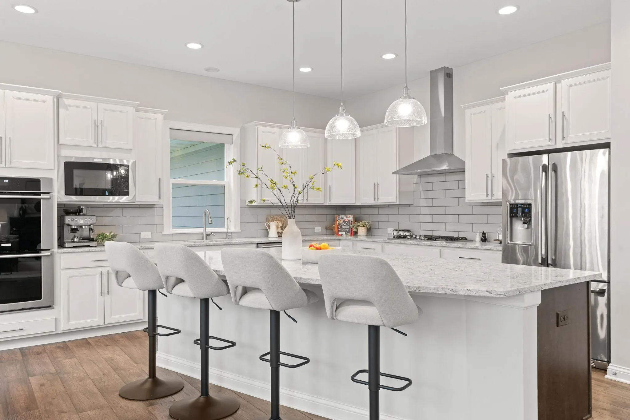 Bright, open & updated—FEELS LIKE NEW in pool community within award-winning WAYZATA SCHOOLS! Bright, open floor-plan w/ tons of natural light & 10-ft ceilings on the ML. Gourmet Kitchen w/ white cabinetry, oversized center island, quartz counters, SS apps (incl gas cooktop & double oven), SS hood, under-mount sink & pantry. Opens to Dining Room & Living Room w/ stone fireplace. Walk-out to paver patio & beautiful backyard w/ mature trees. ML features Luxury Vinyl Plank throughout. UL offers 4 beds, 3 baths & Laundry Room (incl front-load washer/dryer & sink). Generous sized bedrooms all w/ walk-in closets. Oversized Primary Suite w/ tray ceiling, spa-like bath w/ dual sinks, quartz counters, tiled serenity shower & large walk-in closet. Finished LL w/ Family Room, built-in wet bar, addt’l bed & full bath plus ample storage. OTHER PERKS: full-home shades (ML are electric), Reverse Osmosis system, SimpliSafe alarm system & radon mitigation. Gorgeous curb appeal w/ front porch sitting area & concrete driveway. Located in the sought-after Enclave neighborhood featuring a pool, clubhouse & trails w/ access right across the street. Prime location close to parks, trails, shopping & restaurants.