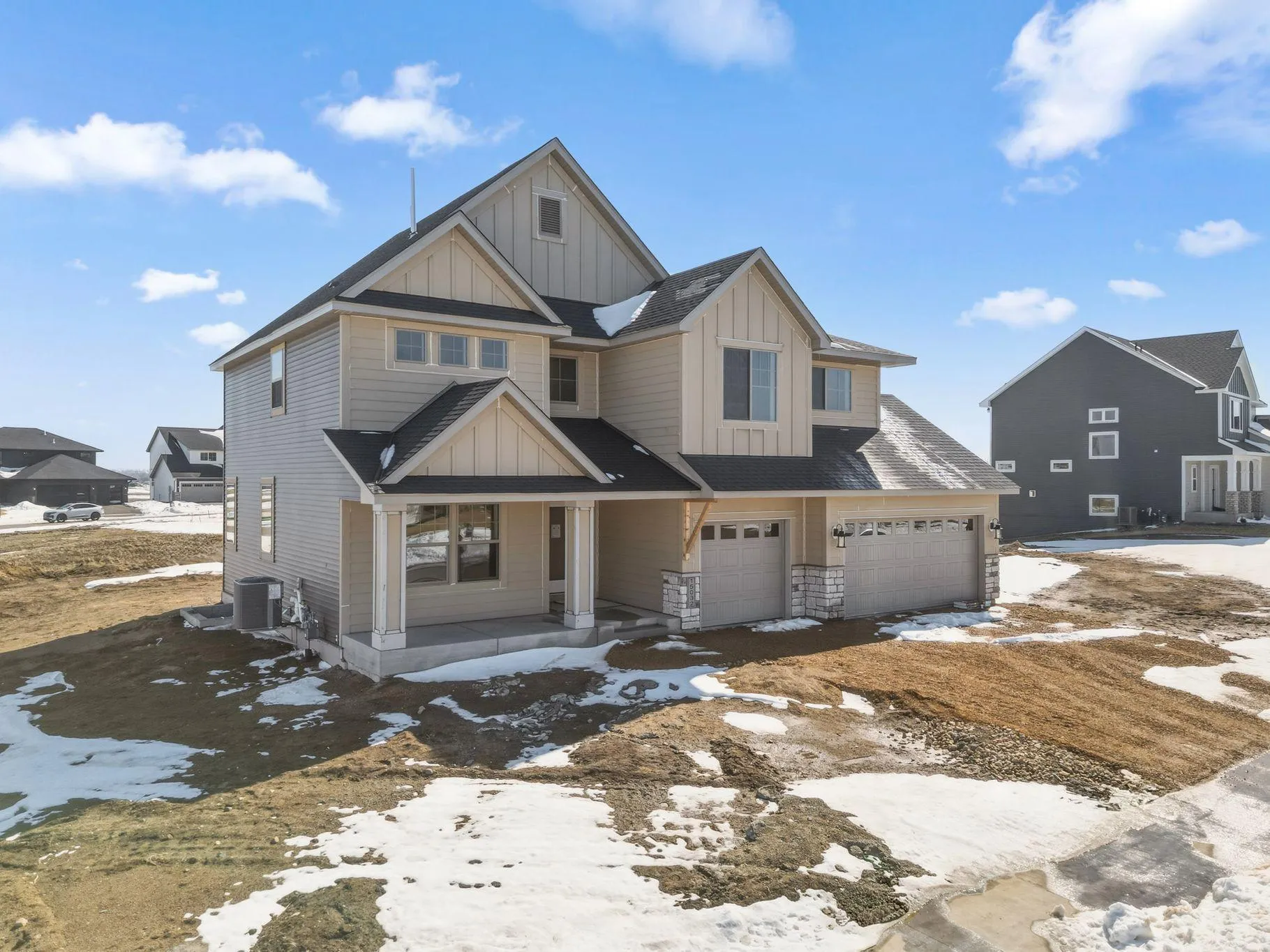 Welcome to Amber Fields with miles of trails, playgrounds, picnic areas, and no HOA fees! At KEY LAND HOMES, with 42 years of trusted experience, this “Preston” has been thoughtfully designed with a 3/4 bath on the main level to service the main level bedroom. Uniquely located stairs in the back mudroom. There are natural wood stained cabinets in the kitchen with soft close doors and drawers, gas range, and quartz countertops. The light filled family room has a modern linear electric fireplace. The upper level has a large loft space, oversized laundry room, and 4 bedrooms. The lower level is finished to provide a rec room space and additional bedroom. Fully sodded yard with irrigation, rock around the foundation, and plantings in front of the porch is included. The model home in the neighborhood is the same floorplan and furnished. We invite you to stop by to check our the possibilities. Please ask about promotion of 5.25% on a 30-year conventional loan!