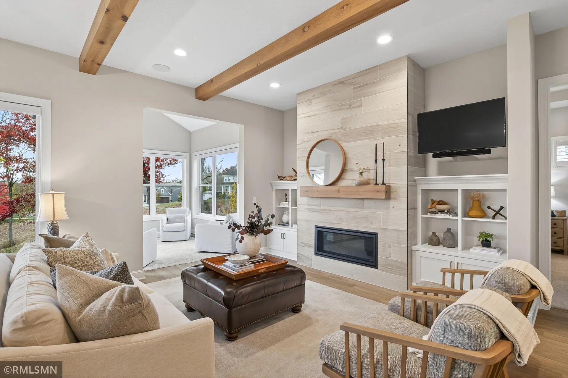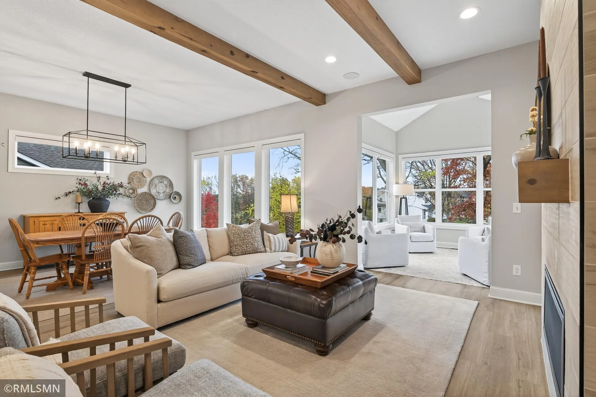 The main level offers an expansive open layout with an inviting living and dining area, a beautiful kitchen with a large center island and walk-in pantry, a sunroom surrounded by windows, and a private office. The primary suite features a spa-like bath with a walk-through design leading to a spacious walk-in closet. Convenient main-level laundry and a stylish half bath complete the space.