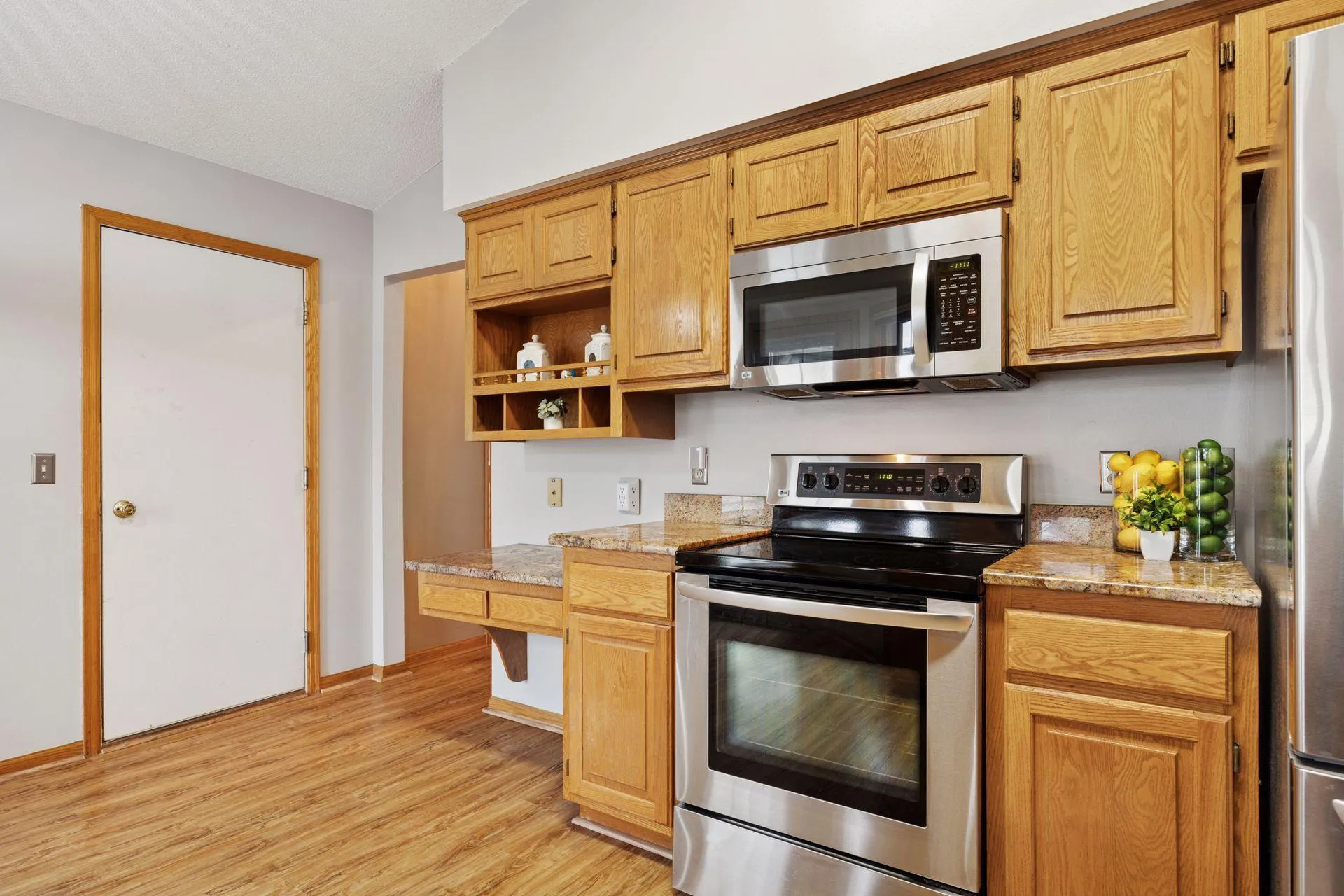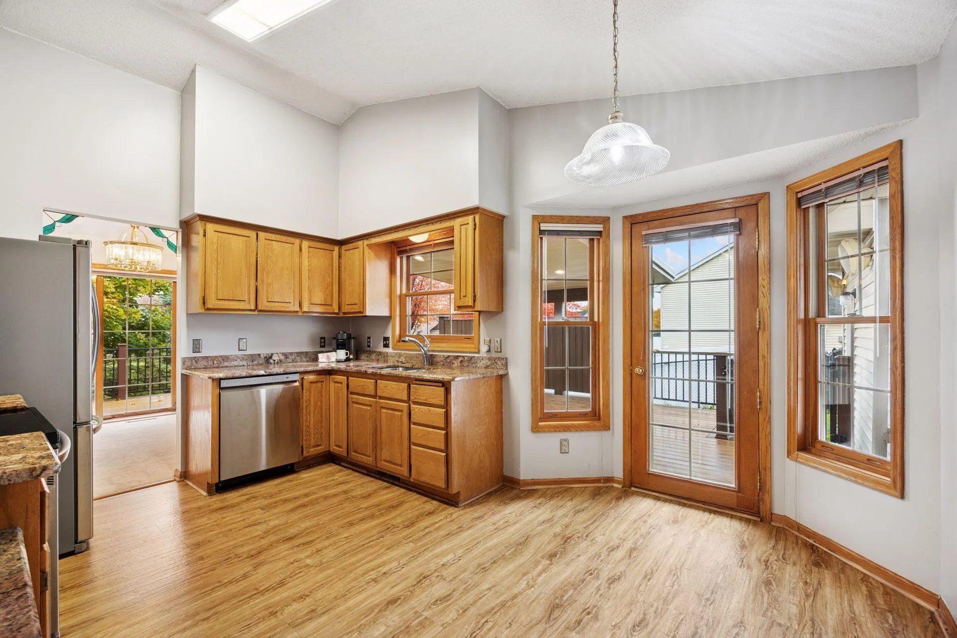 Beautifully maintained home in desirable Eagan neighborhood! Bright and open main level features vaulted ceilings, tall windows and cozy gas fireplace. Kitchen offers stainless steel appliances, granite countertops and plenty of cabinet space. Upstairs includes a spacious primary bedroom with vaulted ceiling, walk-in shower and ample closet space, plus two additional bedrooms and a full bath. Lower level provides a large family room with walkout to the backyard, an additional bedroom and bath. The recreation room offers flexible space for a home gym, office, playroom or media area. Enjoy a private, fenced yard surrounded by mature trees and a large maintenance-free deck, perfect for entertaining or relaxing outdoors. Conveniently located near Lebanon Hills Regional Park, walking trails, shopping, and schools. Move-in ready and full of natural light – this home combines comfort, functionality and location in one of Eagan’s most desirable areas!