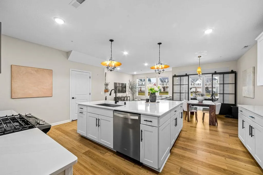 Don’t miss this better-than-new 3BR/3BA end-unit townhome—immaculate, stylish, and loaded with upgrades! Perfectly positioned on a premium lot with no rear neighbors, this home shines with an open layout, abundant natural light, and a sunroom addition that opens to a private patio surrounded by trees. The stunning kitchen features quartz countertops, an oversized island, tiled backsplash, soft-close cabinetry, a pantry, and stainless steel appliances including an armoire-style fridge and gas range. Enjoy the cozy gas fireplace, upgraded flooring, and thoughtful touches throughout including a water softener. Upstairs, the spacious primary suite offers a walk-in closet, double vanity, and frameless glass shower. The insulated 2-car garage provides extra shelving and storage. Located close to Radio Dr’s endless shopping and dining options, with quick access to I-94, this vibrant community also features a private dog park and nearby trails that connect to the regional system. Move-in ready and meticulously maintained—this one’s a true gem that won’t last! The home is pet free and smoker free.