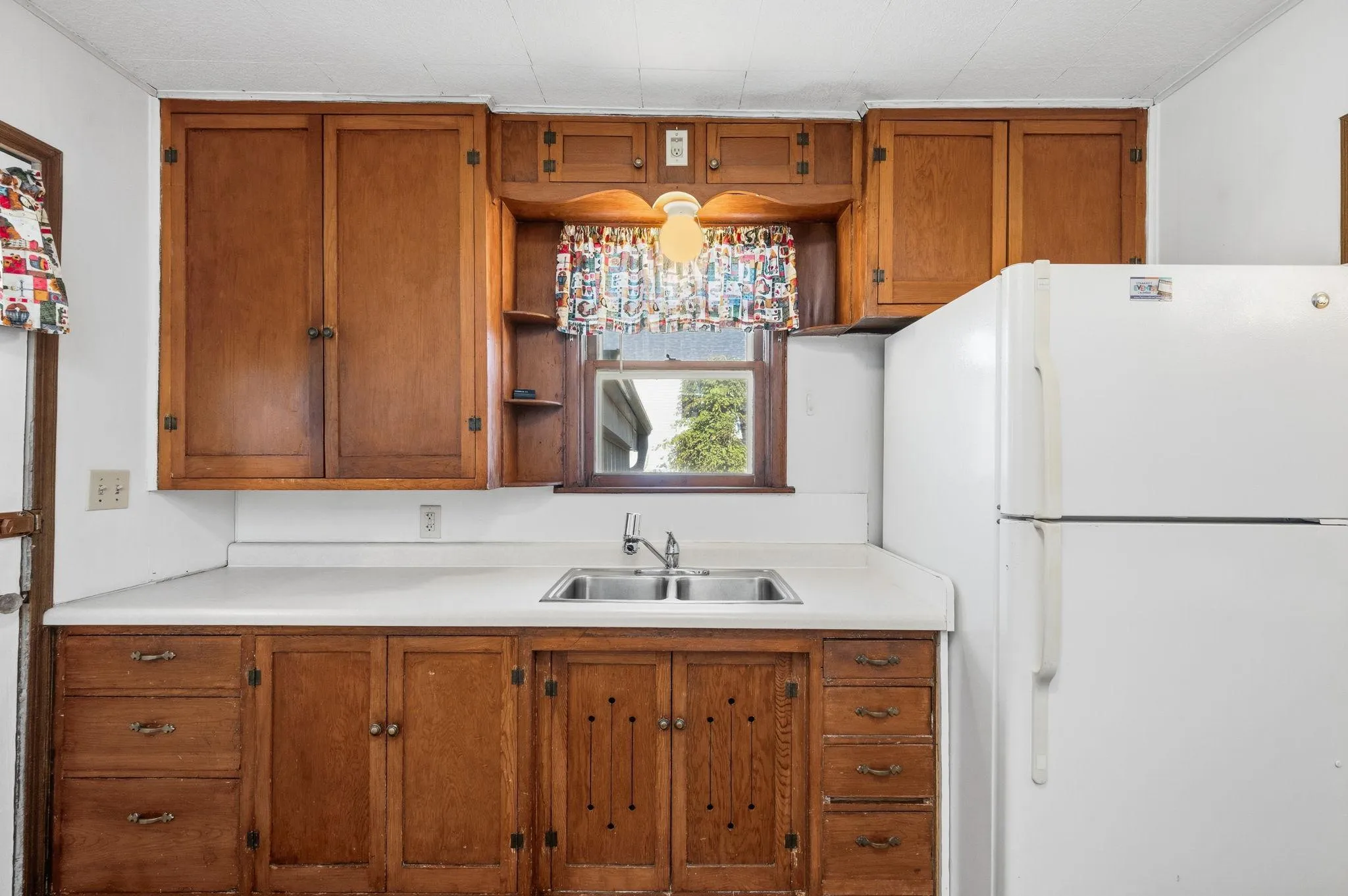 This home sits on a corner lot and features a screened-in porch for enjoying the outdoors, along with a convenient entryway area. Through the kitchen you’ll find the dining/living room along with two bedrooms and a full bathroom all on the main floor. The unfinished basement offers washer and dryer hookups and room for storage or potential to finish!