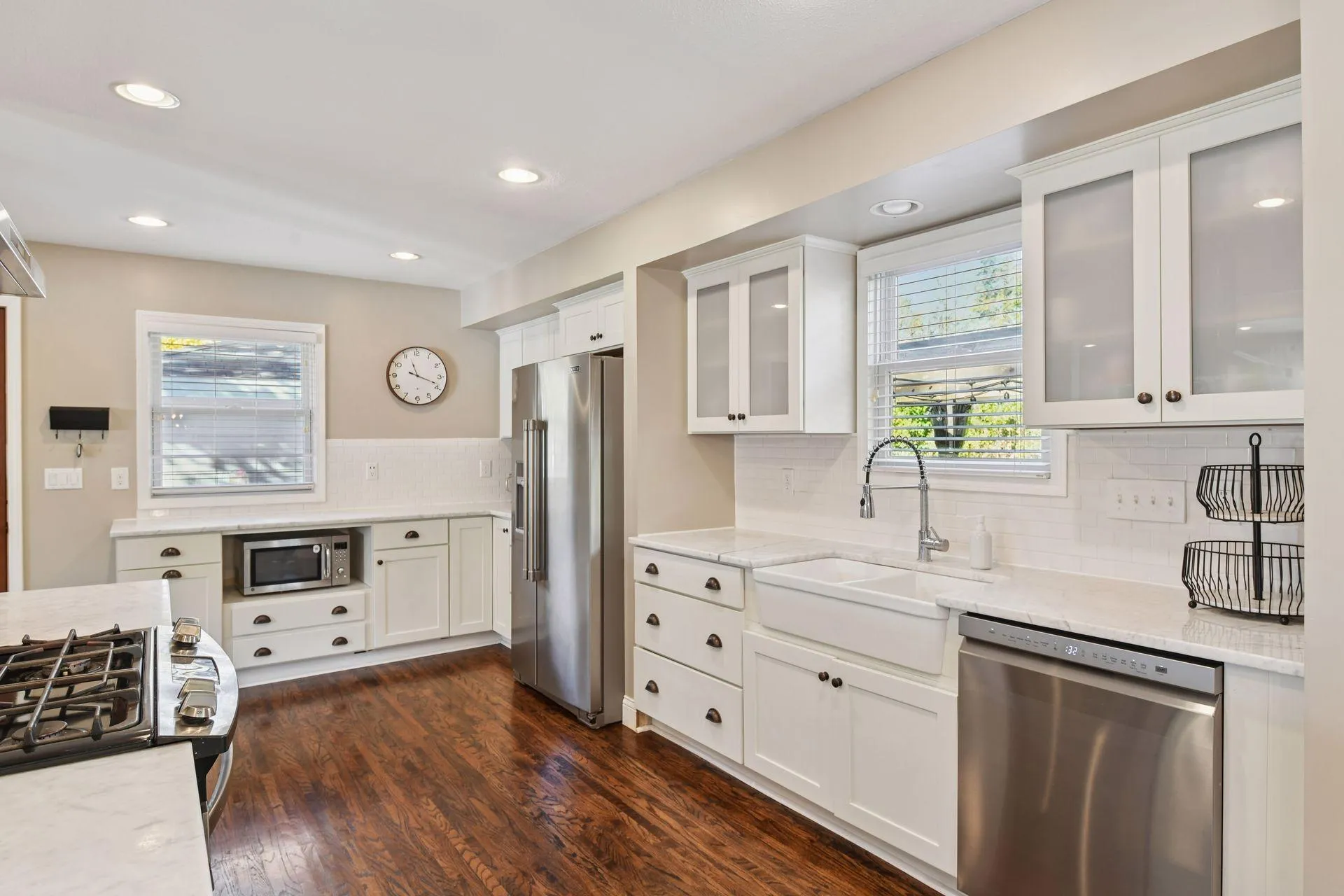 Beautifully updated rambler tucked in a highly desirable Plymouth neighborhood in top-rated Wayzata schools – just one block from both Birchview Elementary and Central Middle School and a short drive to downtown Wayzata and Lake Minnetonka, with Gleason Lake, Parkers Lake and the Luce Line trail nearby. Situated on a rare, gorgeous .42-acre lot with mature trees and fully fenced, flat backyard. Thoughtfully designed throughout with an open floor plan that includes a fully remodeled kitchen, bathrooms, and fully finished basement retreat. The kitchen is filled with style, showcasing marble countertops, SS appliances including a gas stove, farmhouse style sink and easy pullout drawers. Generous informal dining area with a charming built-in buffet for extra storage and serving space. Gleaming hardwood floors, modern white woodwork, trim and elegant doors span the main level. Primary offers a light, serene space w/ double windows, a private bathroom w/ walk-in shower and gorgeous tilework, and a unique barn door to full walk-in closet that all make this turnkey home a standout. Retreat to the spacious finished basement offering a neutral palette and stylish wood wall backdrop that sets the tone for this cozy family room space. The backyard is a standout, fully fenced and flat with a patio retreat and screened pergola making it perfect for play, relaxation or entertainment. This gorgeous rambler is ready for a new owner to appreciate its long list of spectacular home features! This home blends comfort, style, elegant updates, ideal location, and a highly functional, transitional floor plan. Don’t miss this GEM!