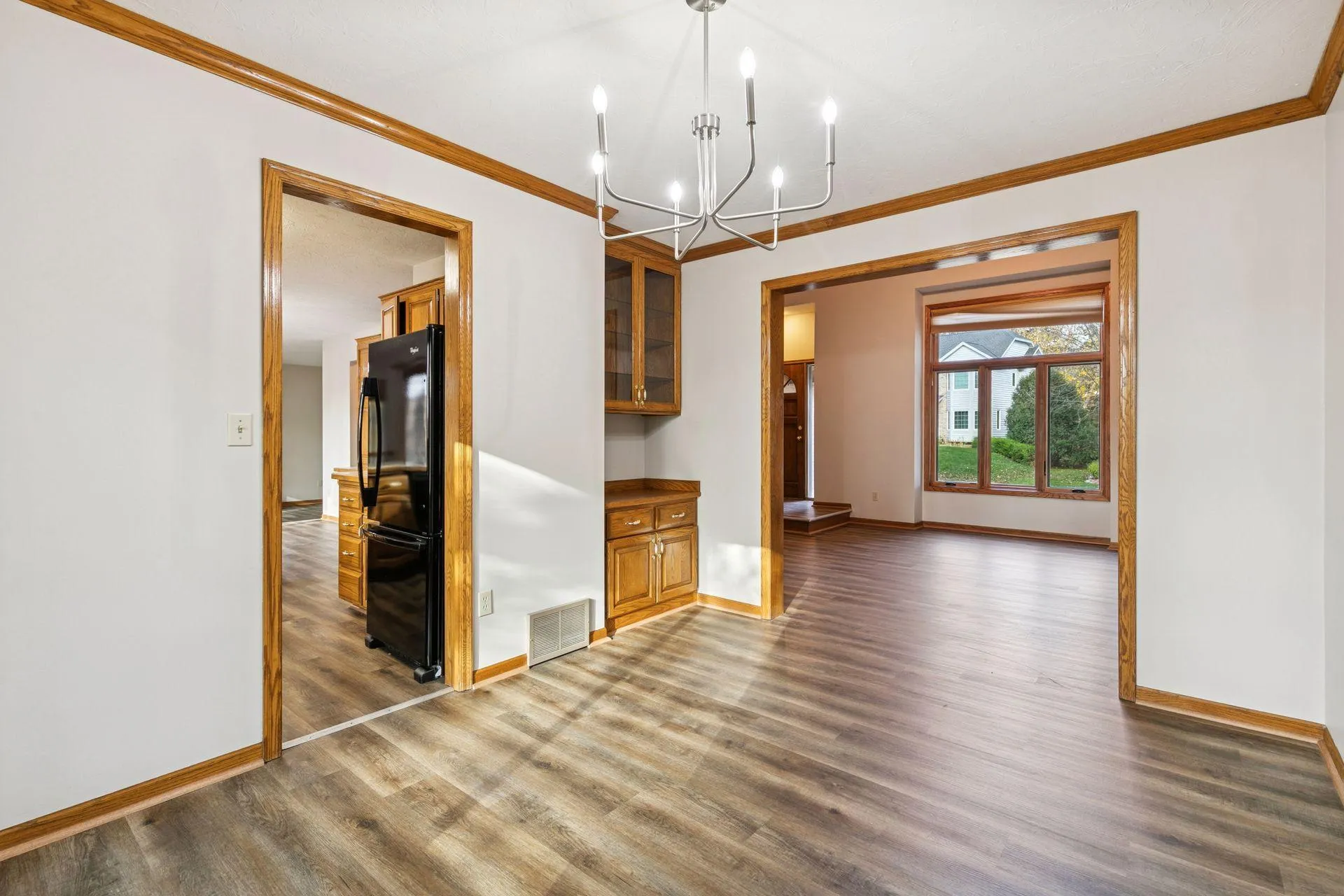 Welcome to your next chapter! Nestled on a beautifully wooded .45-acre lot in the much-loved Raspberry Ridge neighborhood, this home offers the perfect blend of comfort, style, and space. Inside, enjoy fresh paint, new LVP flooring, plush carpet and stylish new bathroom vanities. The living space is open and welcoming, with enough room for both cozy evenings and entertaining. Hints of character from the original build are blended with updates that show this home has been loved. The kitchen and dining area flow seamlessly. Big windows let in plenty of natural light, bringing in views of mature trees and the private wooded backyard. The bedrooms are oversized offering true space to spread out! A new roof was just put on this summer. The lower level is unfinished just waiting for your finishing touches. Ideal equity and future living space potential. The neighborhood is peaceful, friendly, and conveniently positioned near shopping, dining, lakes and recreation. A fantastic opportunity to settle in, personalize and put down roots in a highly desired location