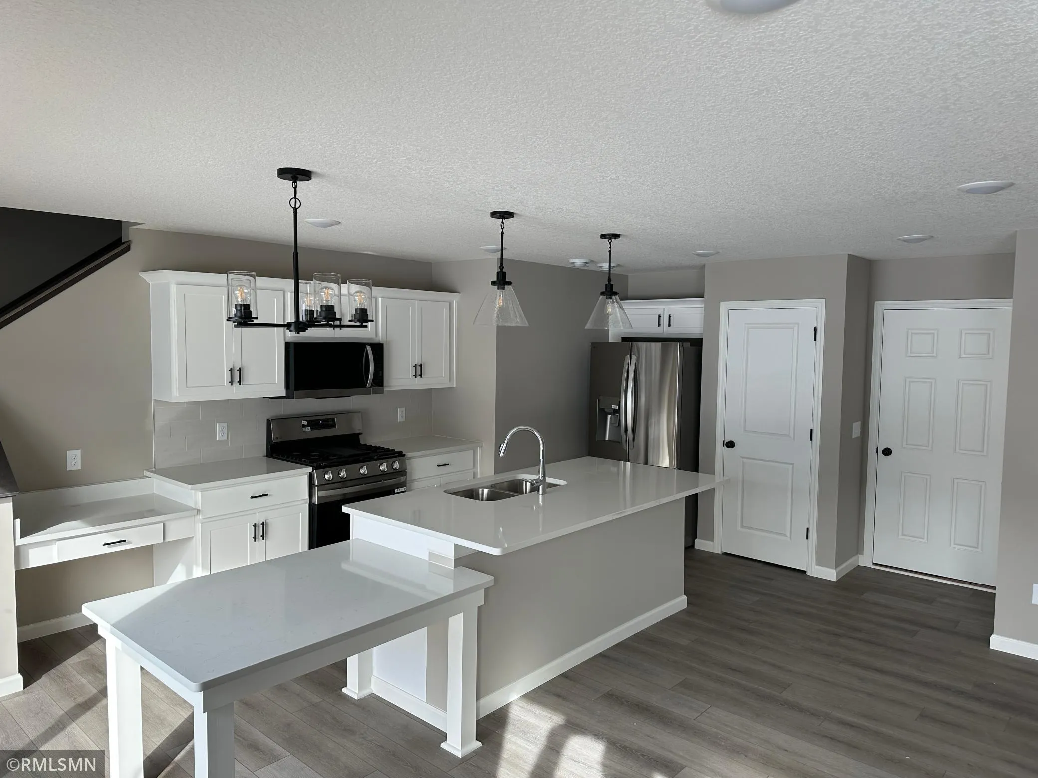 Ask about our 4.99% interest rate with our preferred lender! Ready to move into! This thoughtfully designed home combines style, comfort, and value. The main floor features luxury vinyl plank flooring throughout, creating a seamless flow from room to room. Enjoy cozy evenings by the sleek electric fireplace in the living room, or channel your inner chef in a kitchen that boasts quartz countertops, a ceramic tile backsplash, and modern white cabinetry. The extra-long kitchen island transitions beautifully into a stylish dining island, perfect for gatherings and casual meals. Step outside from the dining area onto a spacious concrete patio—ideal for outdoor entertaining.