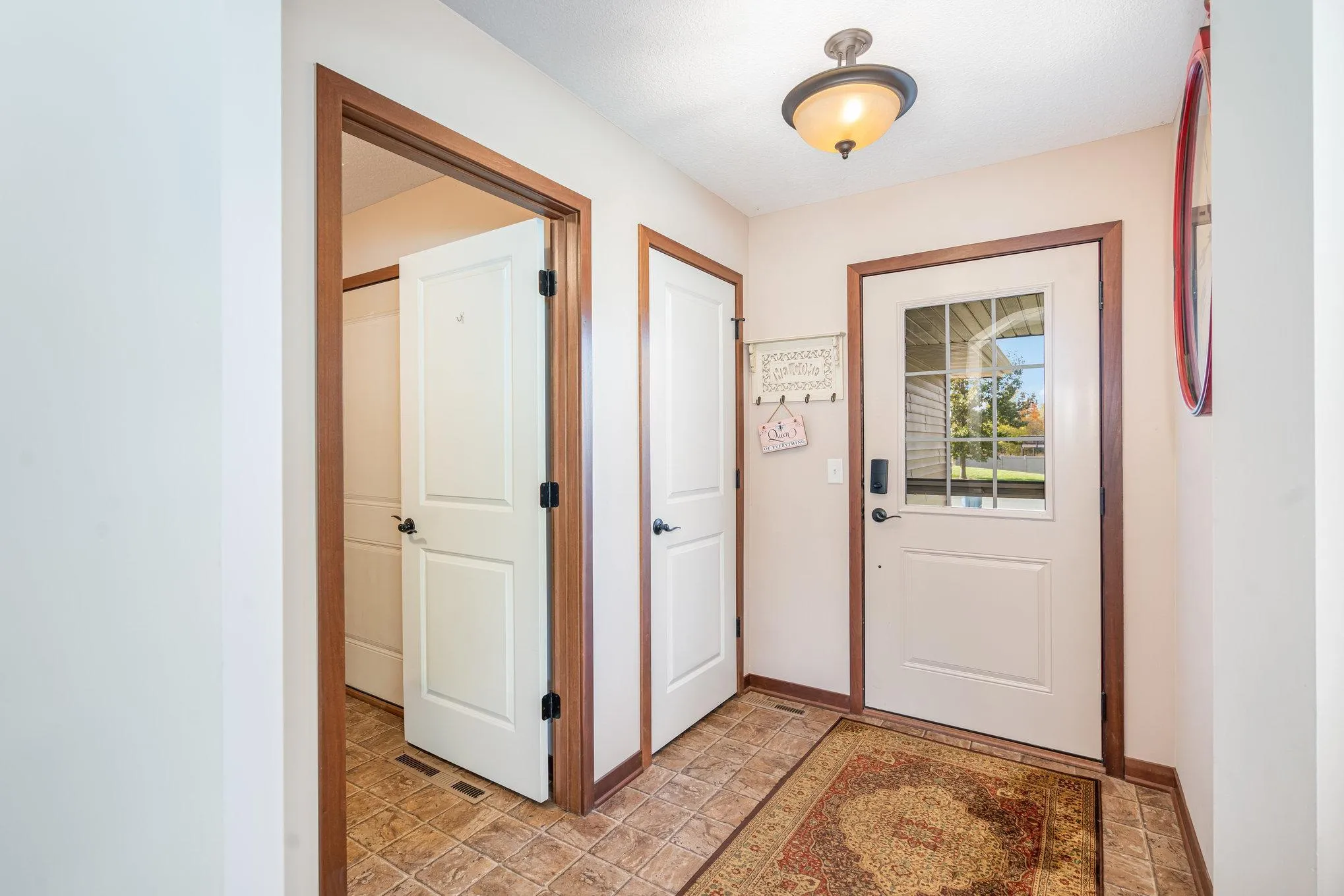 Here it is! Easy living on one level AND an oversized 2 car garage! This charming, detached townhome sits on a corner lot and offers comfort, convenience, and space. Enjoy an open layout with vaulted ceilings, a cozy gas fireplace, and a maintenance-free deck. This well-maintained home features 2 bedrooms and 2 bathrooms, including ADA-accessible doors and showers. The spacious kitchen offers abundant cabinets, countertops, and a pantry. Primary bedroom includes a walk-in closet. New roof in 2018. Lightly lived in — seller is a snowbird, so appliances have seen minimal use. Convenient location near the library, YMCA, shopping, churches, and with an easy commute to the Twin Cities. Detached townhomes in this neighborhood rarely become available—schedule your showing today!