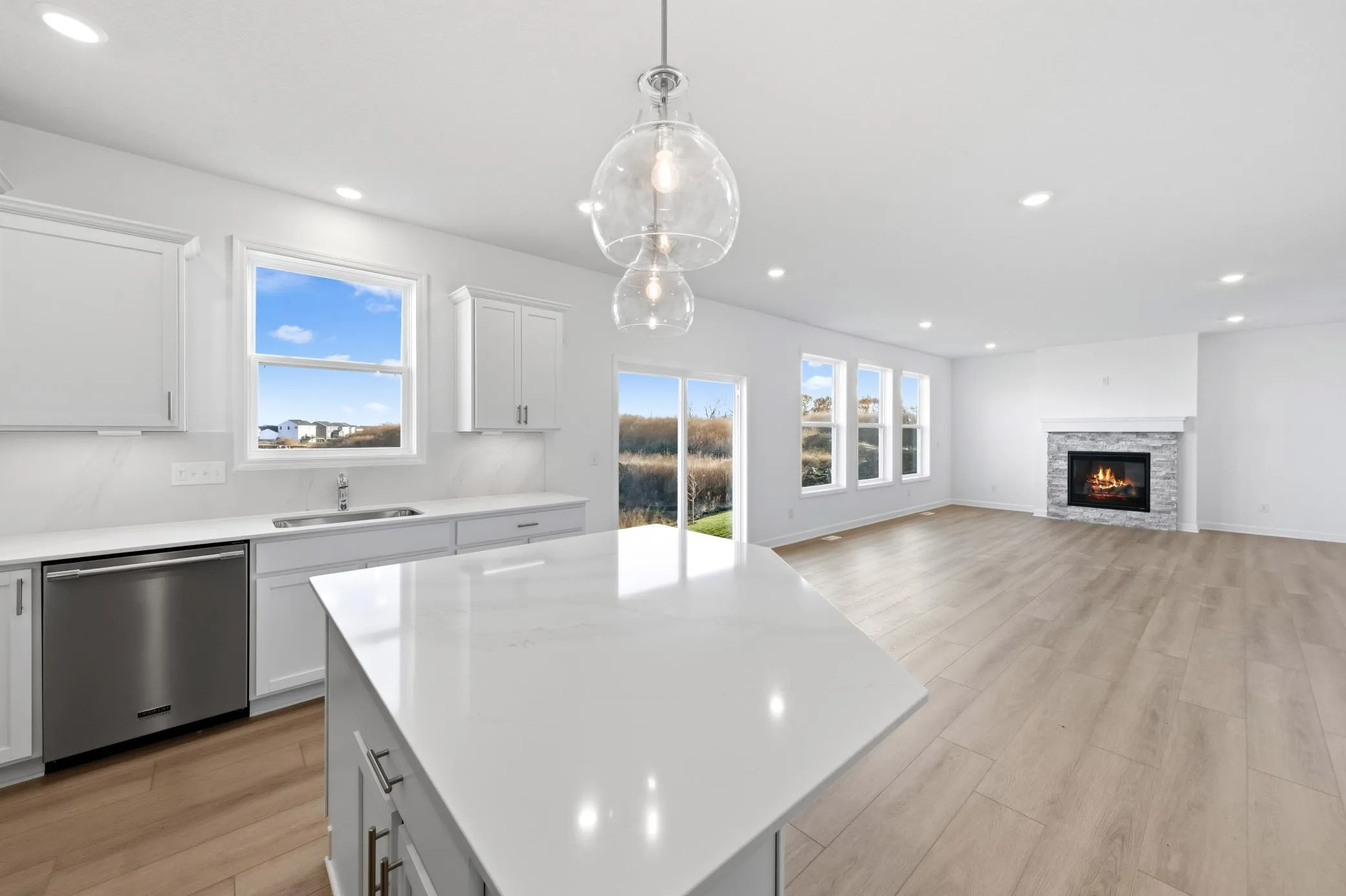 This home is available for a quick close! Ask about how to qualify for $7,500 in CC with the use of the Seller’s Preferred Lender! The Sinclair floor plan combines style and functionality with 4 bedrooms and 3 bathrooms. The main level boasts a stunning gourmet kitchen with soft-close cabinetry, upgraded stainless steel appliances, quartz countertops, a spacious island, and a walk-in pantry. A cozy stone fireplace adds warmth to the great room, while a main-floor study with French doors offers privacy and versatility. Upstairs, the luxurious primary suite features a spa-like bath with a freestanding tub and separate shower. The upper level also includes a spacious laundry room and a walk-in linen closet for added convenience. The unfinished walkout lower level provides endless possibilities for future expansion. Plus, full-yard sod, landscaping, and irrigation are all included!