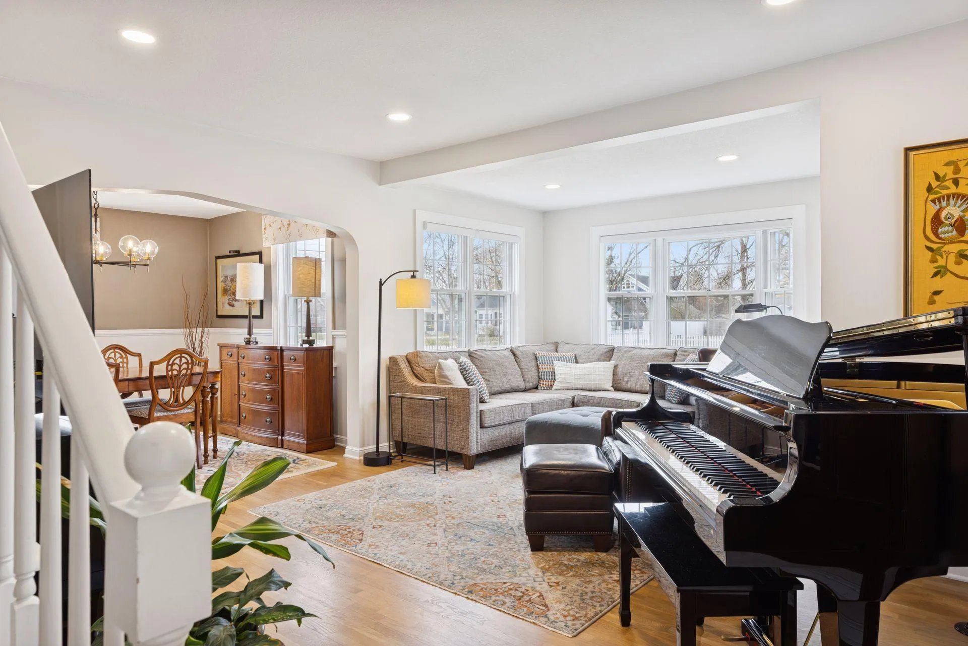 The spacious main-floor primary bedroom connects to a stylish pass-through full bath, while the beautifully upgraded four-season porch, featuring Andersen windows, in-floor heat, and a ductless mini-split, provides a serene retreat or an inspiring home office. Upstairs, a reimagined layout offers two charming bedrooms and a spa-like ¾ bath, showcasing a seamless blend of comfort and design. The lower level extends the living space with a warm and inviting family room centered around a gas fireplace, an additional ¾ bath, abundant storage, and a large utility/laundry area.