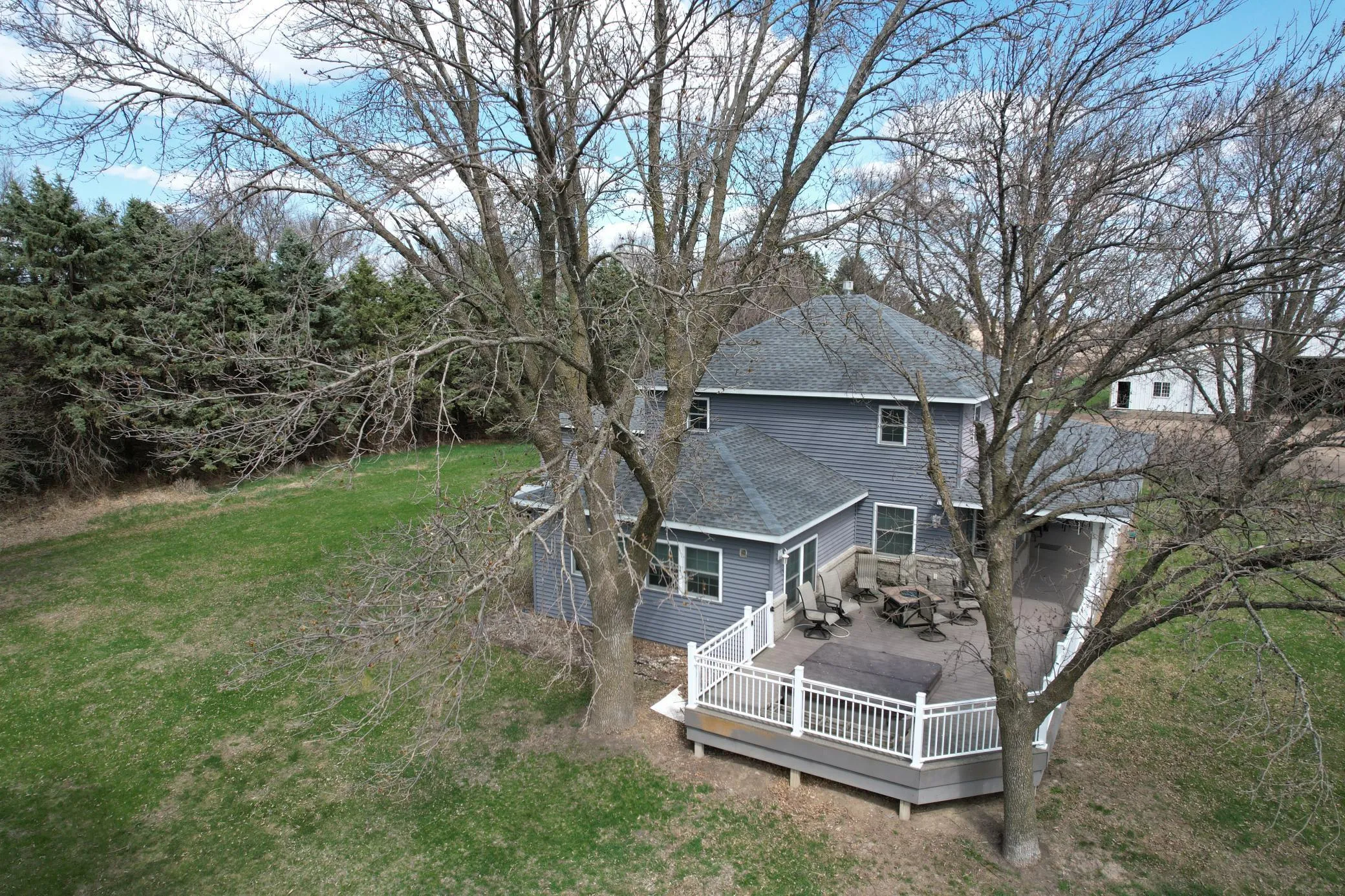 BIG CHANGES! PRICE REDUCTION and The cattle barns and bins have been removed from the site and the tillable acres have been remover as well. Experience the ultimate retreat in this incredible country home. With its low-maintenance exterior featuring vinyl siding and a wrap-around deck, this property is perfect for those seeking a peaceful escape. The open-concept main level flows effortlessly through the kitchen, living, and family rooms, creating a warm and welcoming atmosphere, while the patio doors lead directly to the deck area, perfect for outdoor entertaining, relaxation, or enjoying the hot tub. Plus, a spacious 70 x 100 pole shed with 14′ sliding doors offers ample storage for your camper, machinery, or other toys.