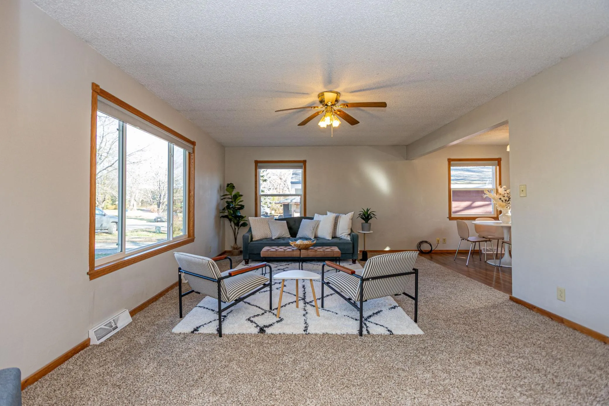 This nicely updated 2-bedroom, 1-bath rambler combines classy upgrades with with a prime location. Inside, the kitchen was tastefully renovated in 2021, showcasing new cabinets, quartz countertops, stylish backsplash, and quality finishes—perfect for everyday living and entertaining. The updated bathroom adds a fresh, contemporary feel, while the oversized one-stall garage offers ample storage or workspace. Outside, the home comes with newly installed (2023) LP Smart Siding, a spacious backyard patio, and a large lot with plenty of room for expansion, or just enjoying your own space. Stay comfortable year-round with a newer AC unit and enjoy the efficiency of a tankless on-demand water heater. Whether you’re looking for your first home, looking to downsize, or just looking for something low maintenance, this home checks all the boxes. Come see for yourself today!