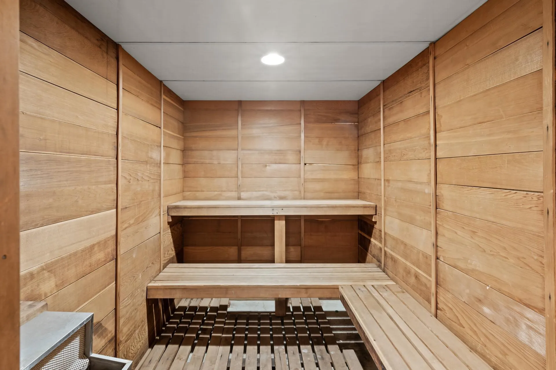 Enjoy exceptional amenities: Unwind and recharge in the sauna or cozy library; Sip your morning coffee on