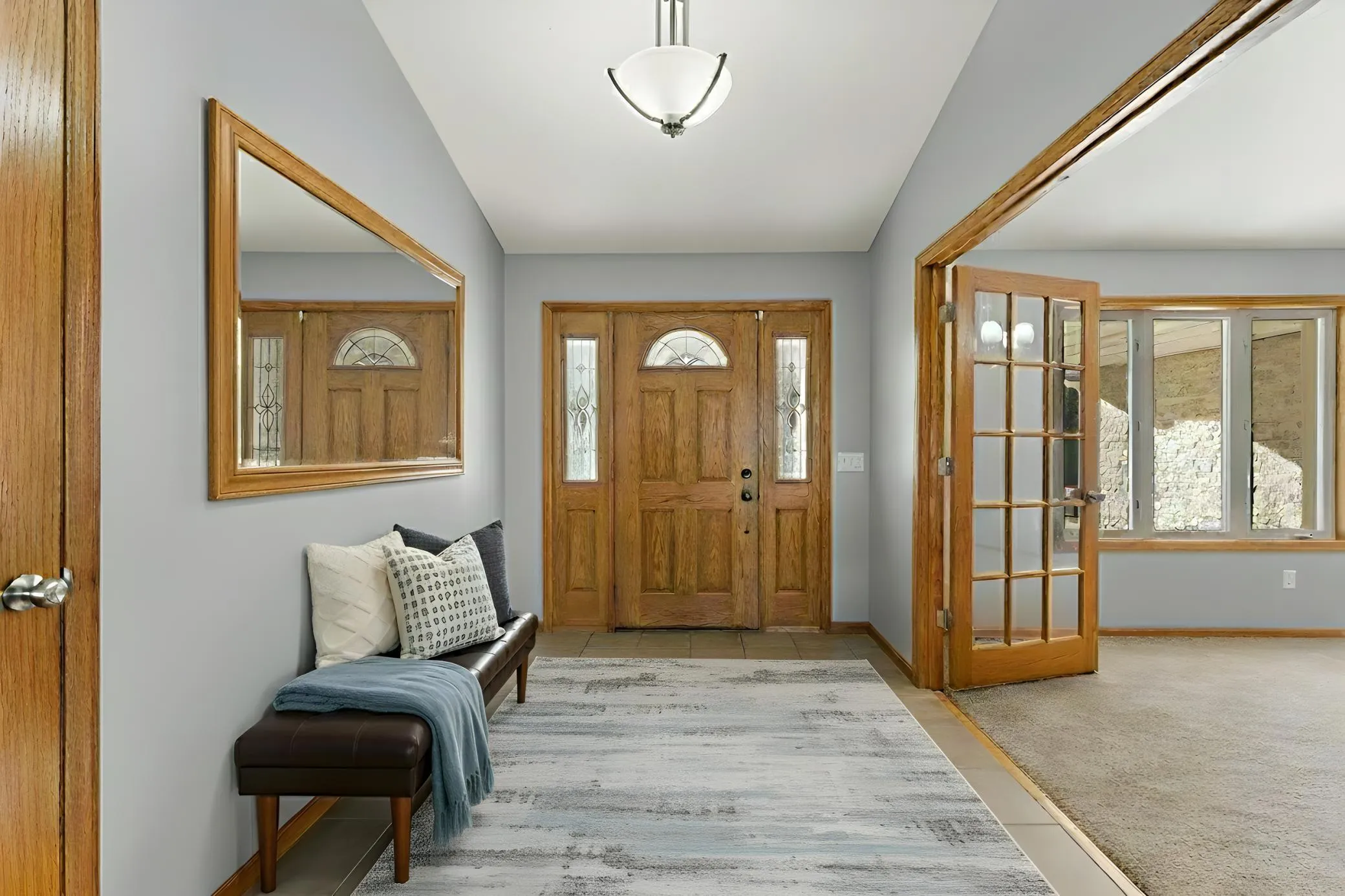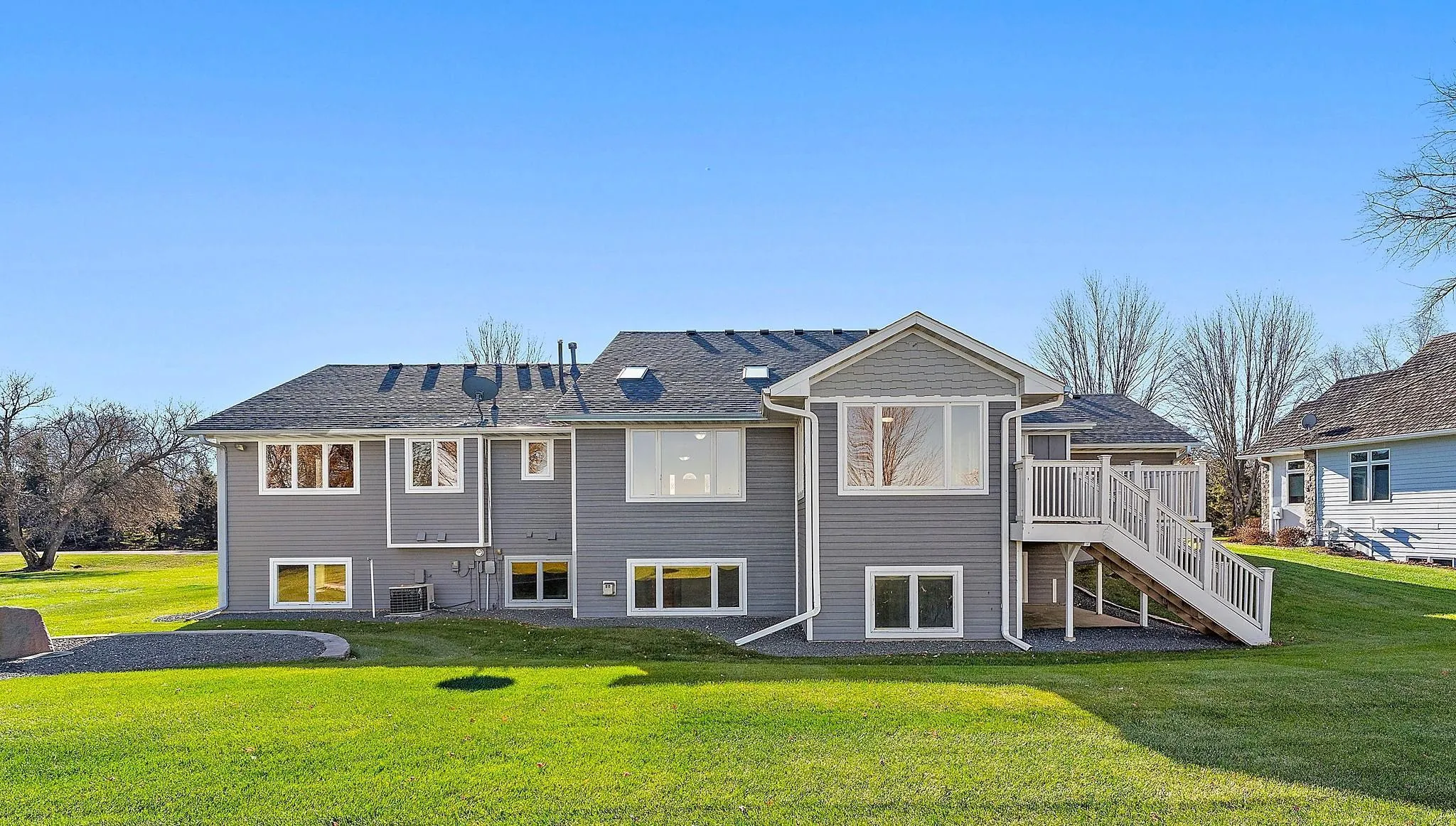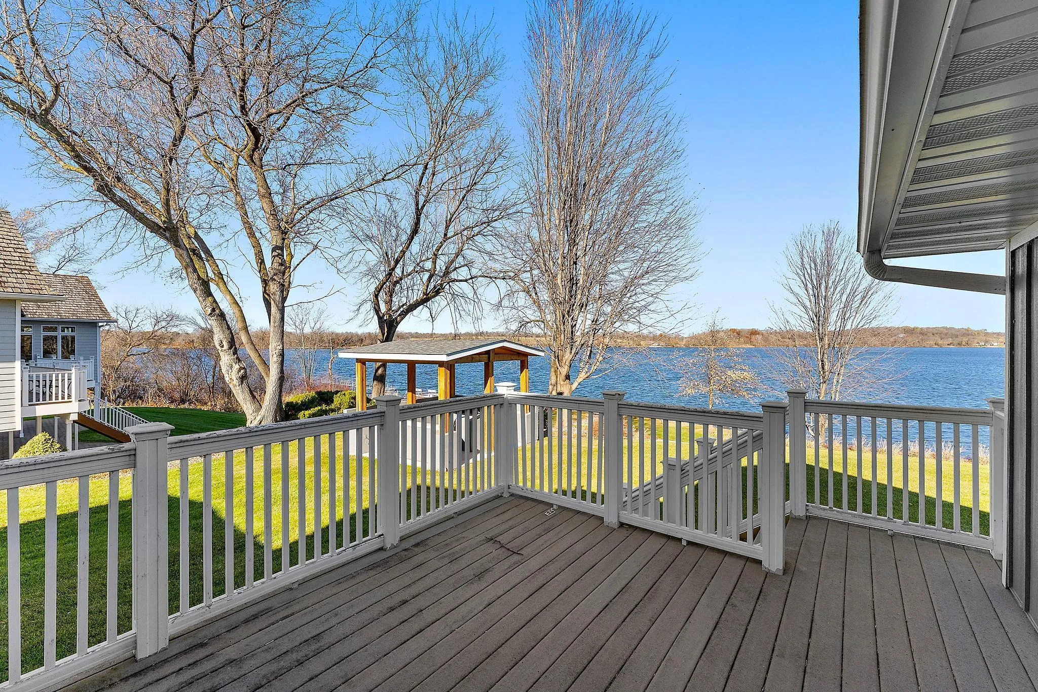 Custom lake home with 160 feet of private shoreline on Cannon Lake. Over 1500 acres to explore by boat! Spacious 1996 built home has over 4500 square feet with 22 rooms and 7 walk in closets! Plenty of room to spread out or the perfect multi-generational layout. Ten expansive lake-facing windows accentuate the panoramic views from every room. Highlights include a four season sunroom, formal dining with french doors, vaulted ceilings, built in shelving surrounding the gas fireplace, center island, walk in pantry, skylights and more! Main floor primary suite offers a jetted tub, double sinks, a 2nd bath/shower/combo & huge walk in closet. Lower level offers so many possibilities….family room with gas fireplace, TV room, playroom, flex room, game room plus additional 2 bedrooms and full bath! Convenient walk up to garage provides the potential for a home business or family needing a separate entrance. 3 car insulated & heated garage with epoxy floors. In ground sprinkler. Covered 168 sq foot patio area with grill offers the perfect place to entertain along with the composite deck and lower level patio. Beautifully landscaped with a tiered rock wall and a gentle slope to lake on almost ¾ acre. Dock and jet ski lift included. New siding in 2023, new roof in 2021 & freshly painted interior. Cannon Lake is known for its calm waters, beautiful sunsets, and easy access for boating, fishing, and year-round recreation—offering the perfect blend of everyday comfort and lakeside relaxation.