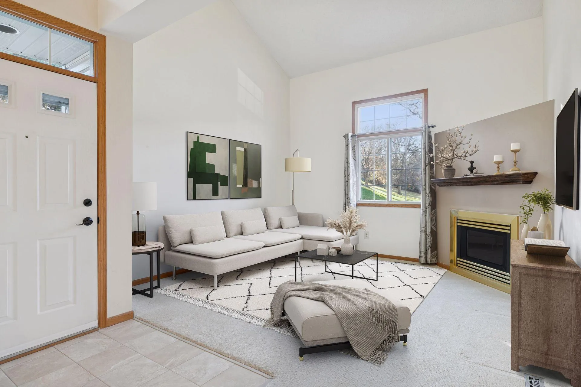 Highlights You’ll Love: Vaulted, sun-drenched living room with a cozy gas fireplace with blower and newer carpeting throughout the home.