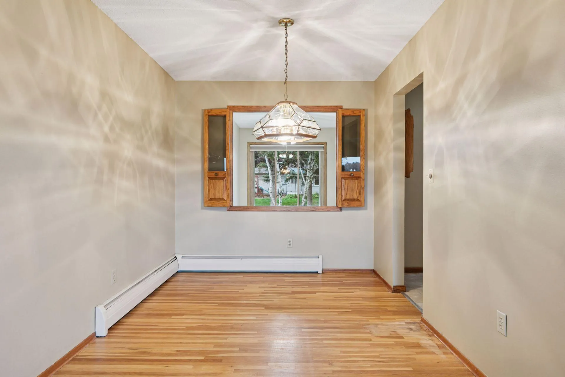 Pride of ownership shines throughout this beautifully maintained 4 bedrooms, 2 bath, split-entry home that has been cherished by the same family for over 50 years. From the moment you arrive, you’ll be impressed by the home’s standout curb appeal – a perfectly manicured .21-acre walkout lot, fully fenced backyard and classic façade that sets the tone for what’s inside. This home offers timeless charm, thoughtful updates, and a welcoming floor plan designed for function and comfort. Step into the sun-drenched main level where you’ll find three spacious bedrooms, a full bath, a bright living room and formal dining area. Original hardwood flooring flows throughout the main level including the three upper-level bedrooms that currently have carpet. The well-appointed kitchen features abundant cabinetry, generous counter space with breakfast bar seating, a corner sink with dual windows, a built-in desk and informal dining area with a convenient pass-through to the formal dining room. Walkout from the kitchen to a raised deck overlooking the backyard, perfect for dining and relaxing outdoors. Below, you’ll find two additional patios and a convenient quick-release gas line for your grill, perfect for grilling and entertaining outdoors. This lovely homes, walkout lower level offers a large family room with new neutral carpet and pad (2025), electric fireplace insert (2025), rustic wood mantle, and built-ins that create a warm, cozy atmosphere. A spacious 4th bedroom and 1/2 bath provide flexible space for guests to stay, a home office, or multigenerational living (with room to add a shower within the lower level 1/2 bath). Recent updates include a ductless A/C unit (2025), 4 Honeywell zone valves that offer a balanced temperature throughout the home (2025) and electric smoke detectors (2025). Additional upgrades and maintenance records are available in the attached supplement, showcasing the care and investment poured into this home over the years. The attached 2-car garage and walkout access to the backyard round out the home’s thoughtful design. Located in a well-established Eagan neighborhood with easy access to parks, schools, shopping, and commuting routes, this move-in ready home combines mid-century character with modern conveniences. Don’t miss this rare opportunity – schedule a showing today and experience all that this classic, well-loved home has to offer.