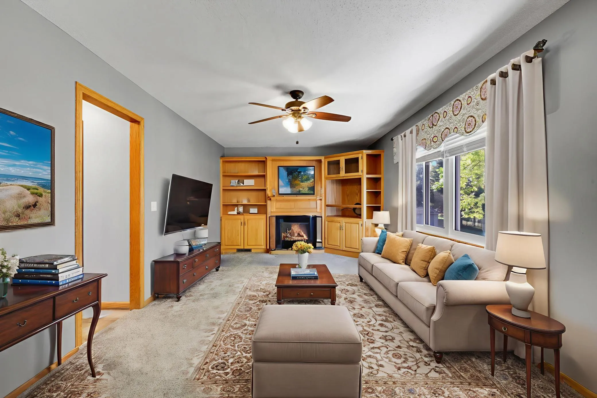 Welcome home to this clean and well cared for 5+ bed, 4 bath walkout modified 2 story close to the Mississippi river. This home features updated kitchen with granite tops, large breakfast bar, gorgeous hardwood floors, vaulted ceilings, main floor family room w/ built in entertainment center and gas fireplace, main floor bed and laundry, large primary suite w/ huge walk in closet and private ceramic bath, updated upper level full bath, 2 additional upper level large bedrooms, finished lower level w/ family room w/ gas frpl, additional 5th bedroom, office, and bath. Other features include, newer windows, newer mechanicals, large deck, awesome patio, gorgeous lot w/ mature trees, 3 car garage, A Must See!