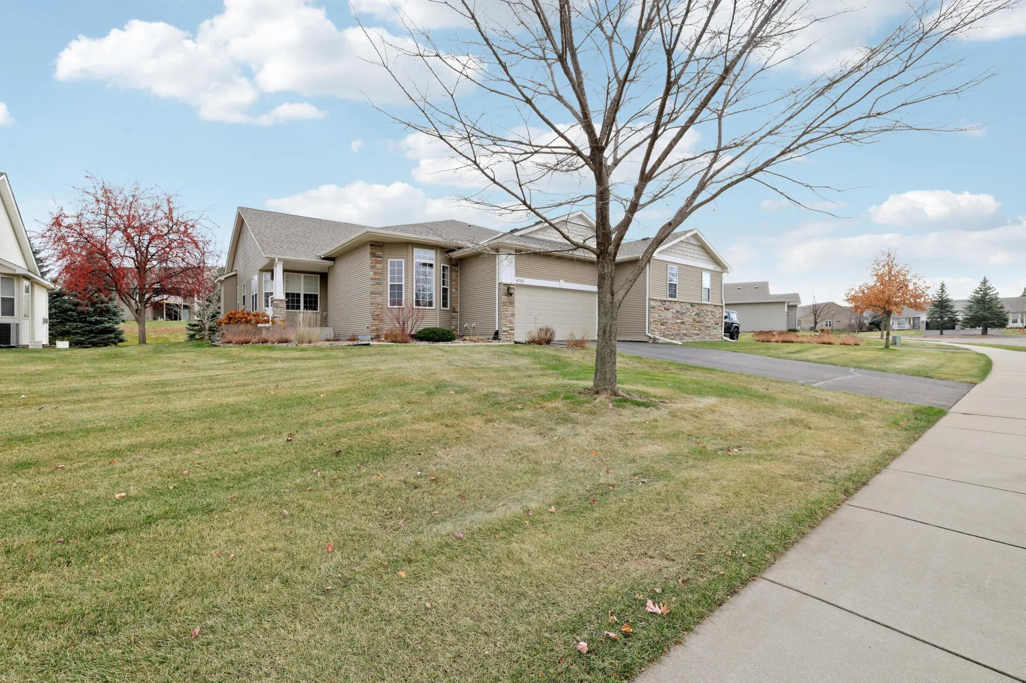 This nearly 3,000 sq. ft. twin home lives like a single-family home—minus the upkeep. The main level offers an impressive 1,922 finished sq. ft. of true one-level living, complete with a main-floor primary suite, updated kitchen with quartz countertops and high-end appliances, a spacious living room, main-floor laundry, a beautifully appointed formal dining room with built-ins, and a den perfect for a second living space or home office.