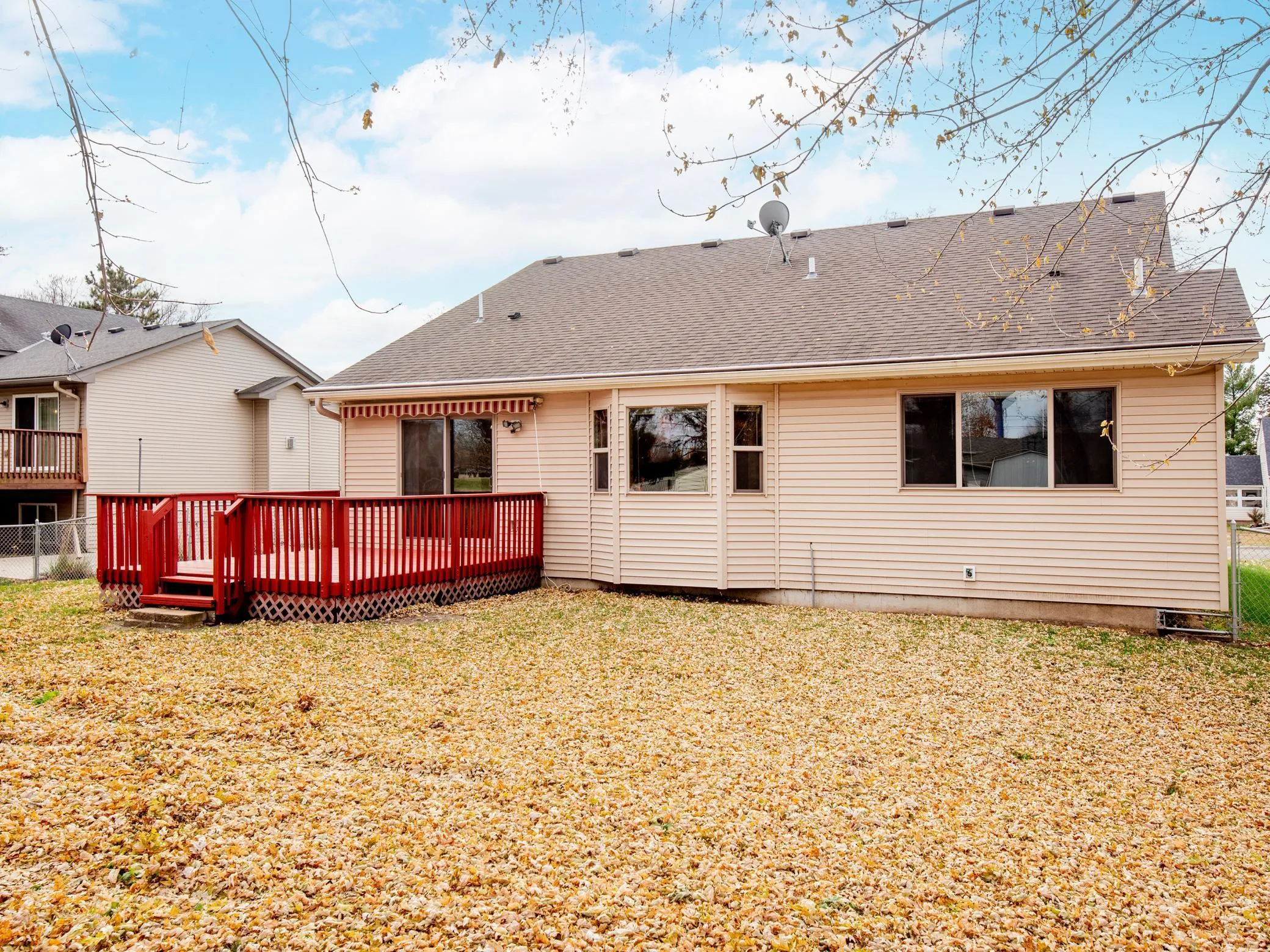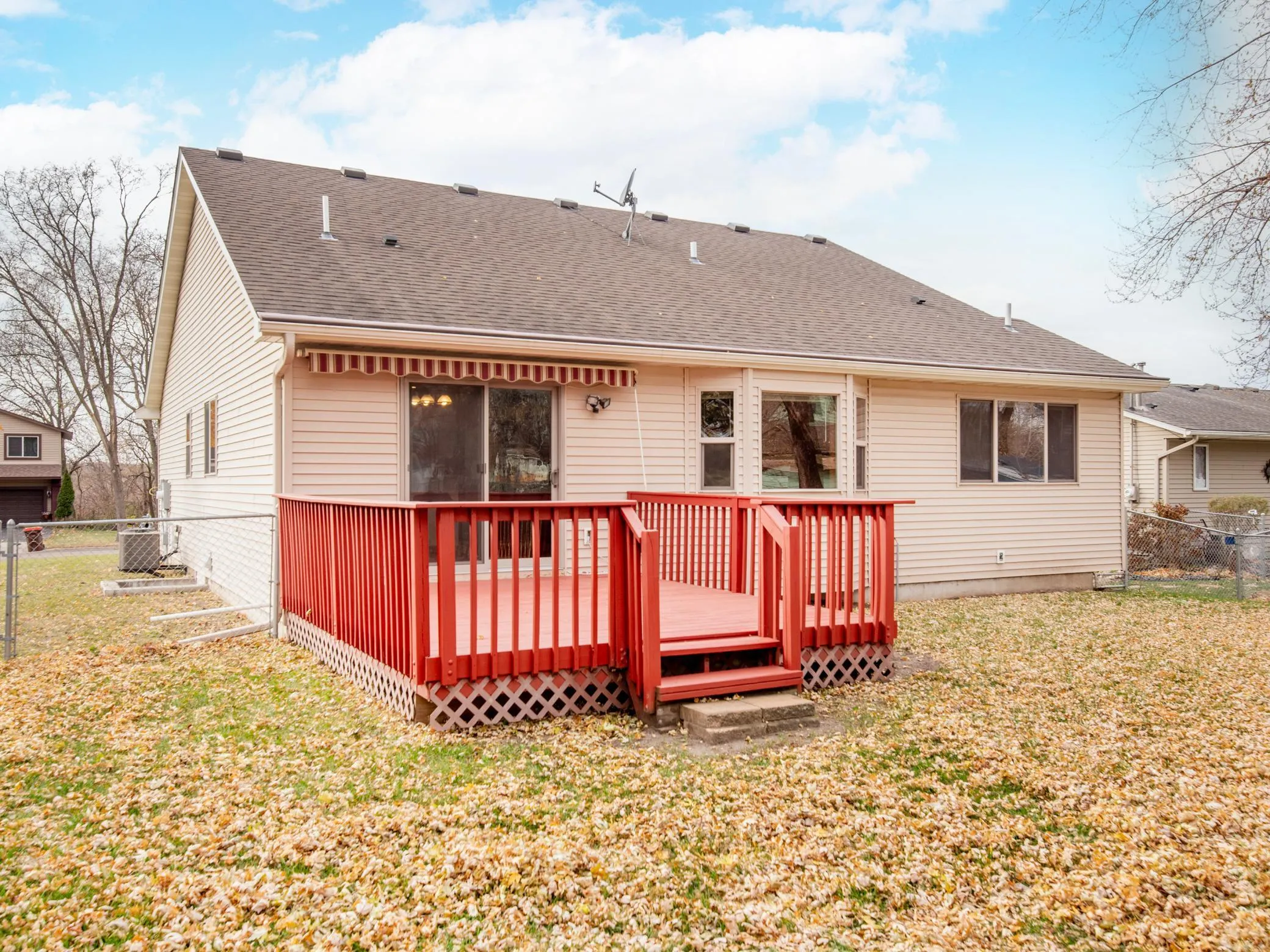 – A newly painted Deck with a Sunsetter Awning and a peaceful backyard