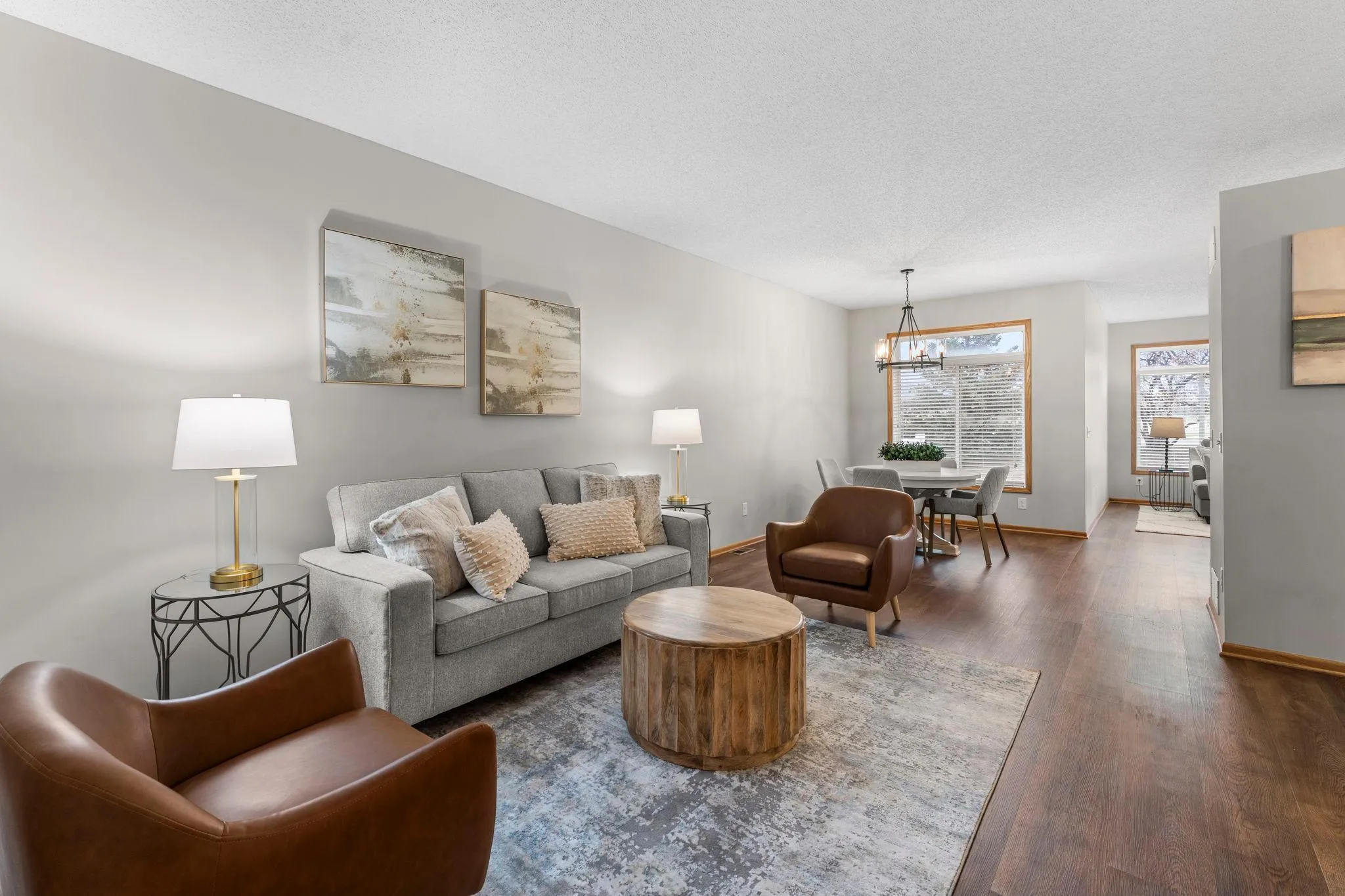 Welcome to this impeccably updated, one-level townhome offering exceptional comfort and modern convenience, complemented by a fully finished lower level. The main floor features a bright, open layout enhanced by new flooring, updated lighting, fresh paint, granite countertops, and brand-new kitchen appliances. A spacious front office provides an ideal workspace, while the generous living room flows seamlessly into the beautifully updated kitchen and adjoining sitting area. The main-level primary suite offers a serene retreat complete with a large walk-in closet and a full ensuite bathroom featuring a separate tub and shower. A sliding glass door leads to the private patio—perfect for outdoor dining, relaxation, or enjoying the sun. The finished lower level is designed for entertaining, showcasing a gas fireplace, walk-up wet bar, and an expansive recreation area ideal for gatherings with family and friends. A secondary bedroom and full bathroom provide comfortable accommodation for guests, and the substantial storage room offers excellent space with the potential to serve as a versatile flex room. This thoughtfully updated home combines modern finishes with a highly functional layout, creating an exceptional opportunity for low-maintenance, main-level living.