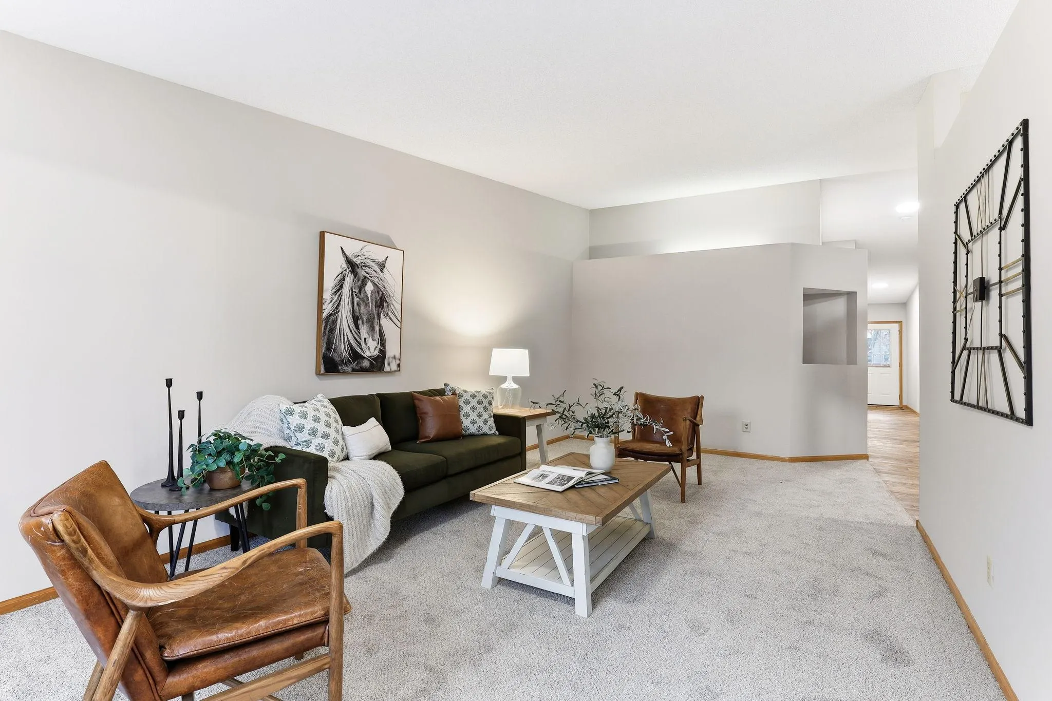 Welcome home to this beautifully maintained one-level townhome in the heart of Plymouth! Nestled in a quiet community, this spacious residence offers effortless main-floor living with bright, open spaces and thoughtful updates throughout. Step inside to a warm and inviting living room featuring vaulted ceilings, neutral finishes, and abundant natural light—perfect for relaxing or entertaining. The updated kitchen boasts generous cabinet space, sleek countertops, mosaic tile backsplash, and a convenient center island that flows seamlessly into the dining and living areas. Two comfortable bedrooms and well-designed bathrooms provide easy, accessible living. Enjoy the convenience of main level laundry and the oversized two-car garage. Outside, the home features a private front entry, mature landscaping, and a peaceful setting just steps from trails, parks, and nature areas. Located in the highly desirable Plymouth community with quick access to shops, restaurants, and major commuter routes, this home offers the ideal blend of comfort, convenience, and low-maintenance living.