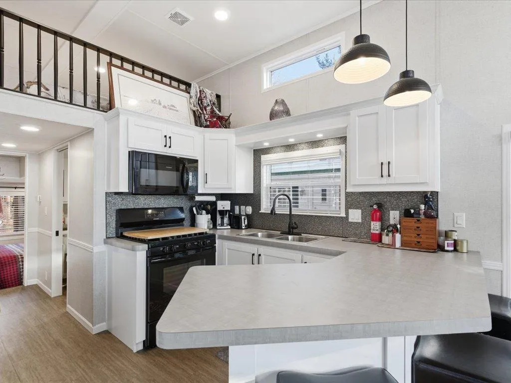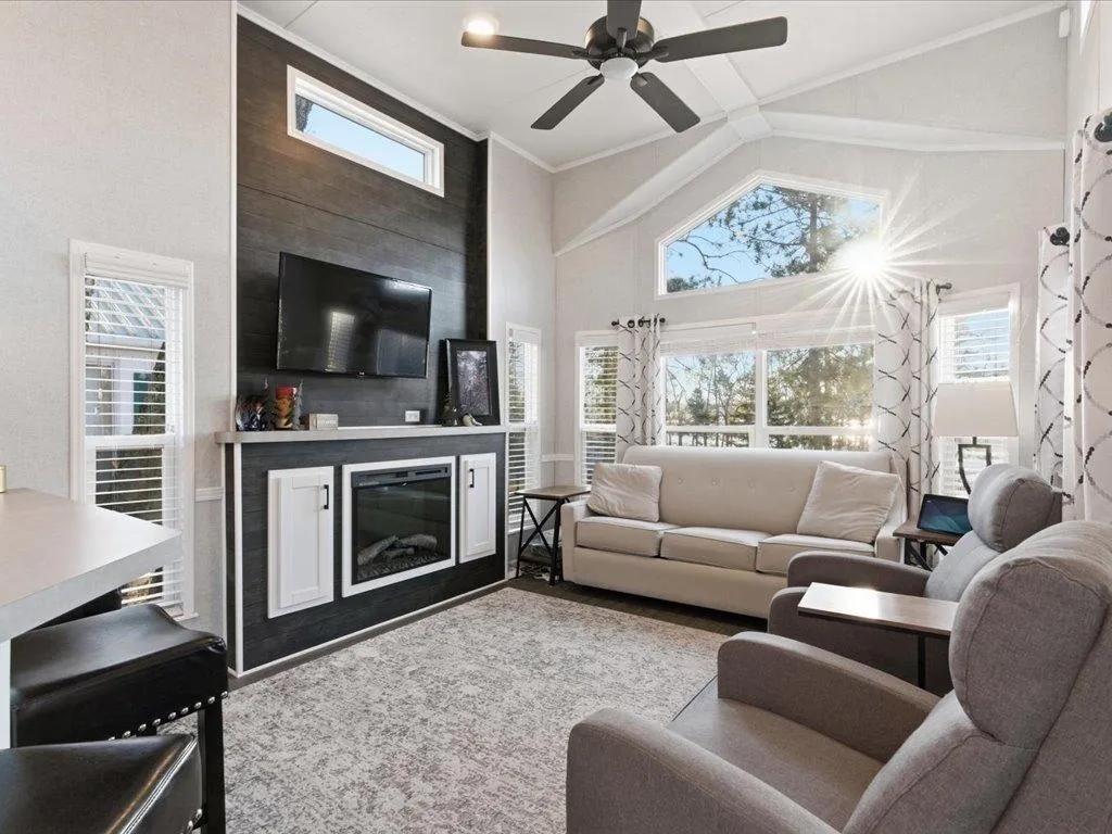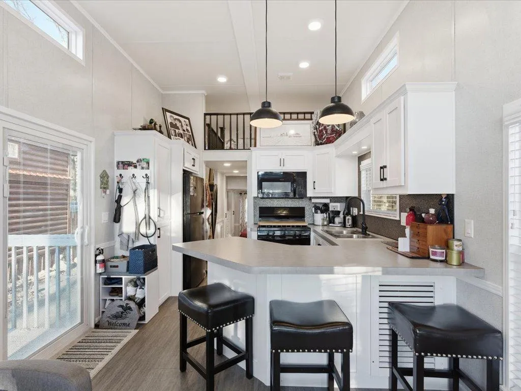 Step into modern comfort with this stunning 2023 park model, flooded with natural light and boasting an open-concept design. This beautiful unit features AMAZING LAKE VIEWS, three cozy sleeping areas with easy loft access, 2 access doors, fireplace, spacious living room, stainless appliances, built in kitchen seating, vaulted ceilings, abundance of windows, large bathroom, lots of kitchen cabinets and bedroom storage. Speaking of lake, You’ll fall in love with “The Lake View”. Located in the 3rd row your just steps away to the swimming beach, playground and the heated outdoor pool that’s sitting at the water’s edge. Sit on your patio, have a bonfire and listen to the calls of the loons.