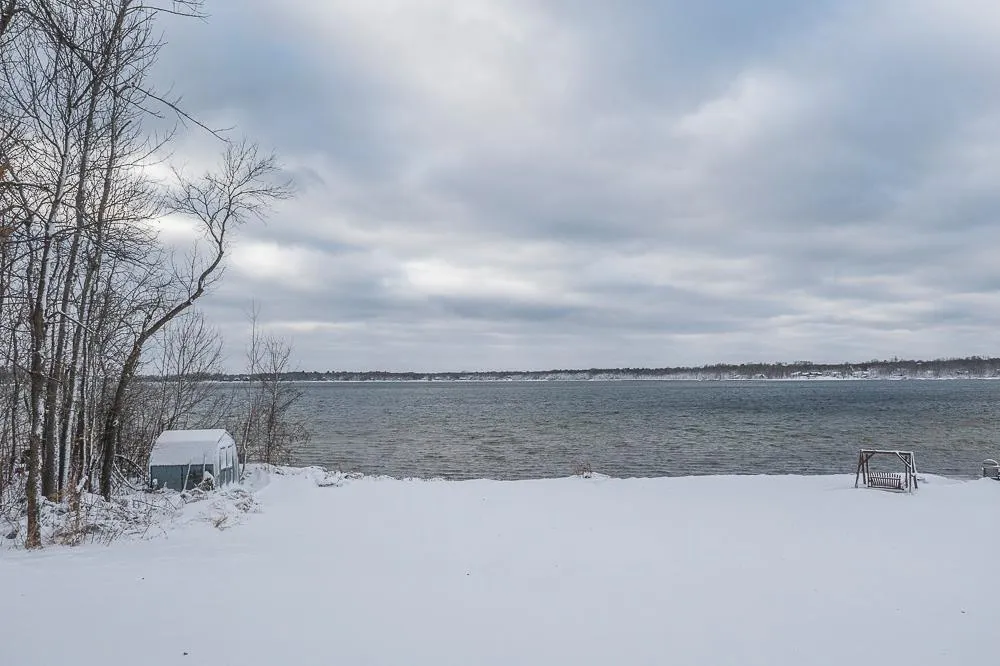 100 ft of PRIME shoreline & SUNSETS-excellent hard sand-level elev-Merrifield Bay-3BR-2BA-open floor plan with renovated kitchen featuring custom cabinets and granite-lakeside sunroom 22×48 garage-Paul Bunyan trail access.