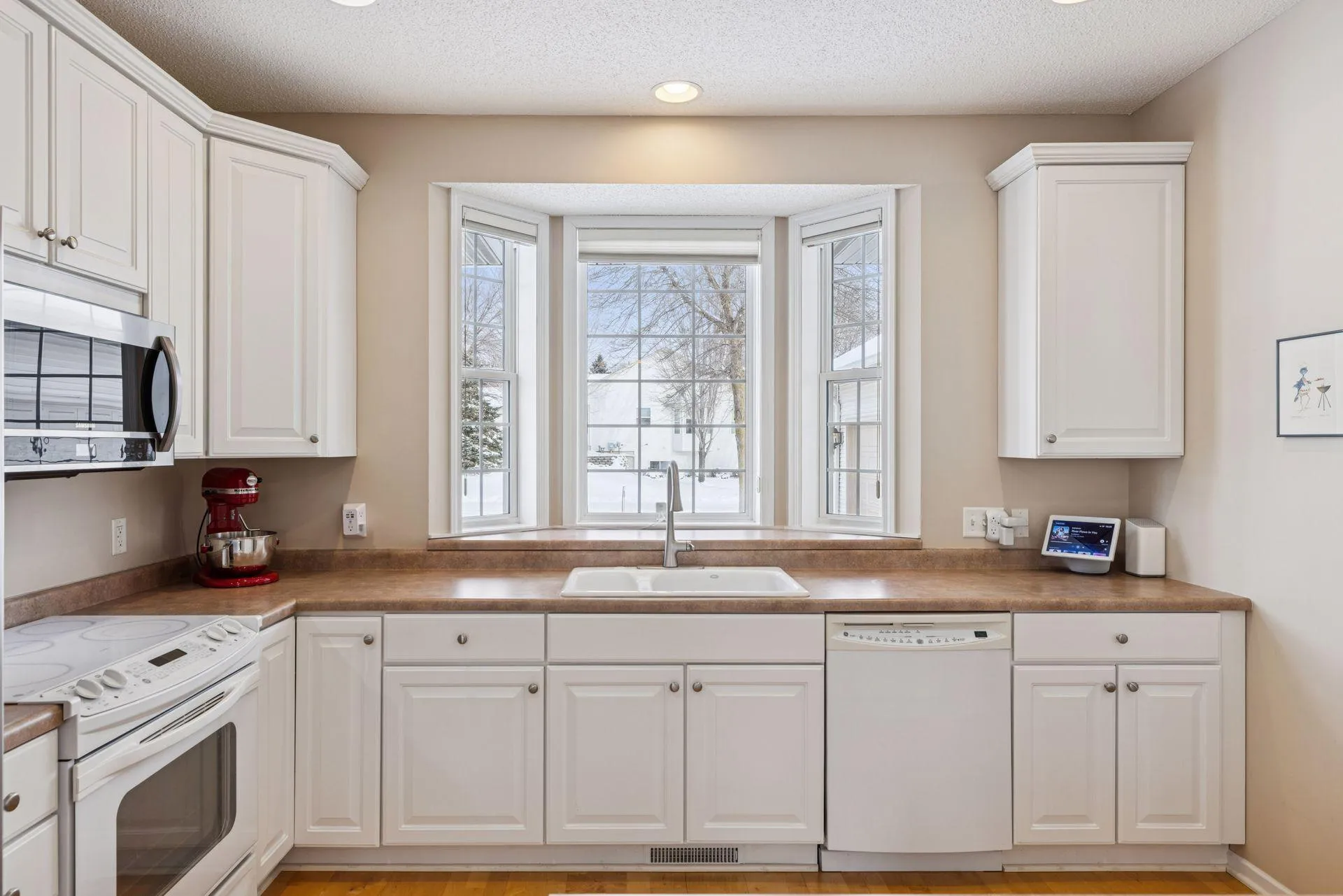 Welcome to Preserve Meadows—Woodbury’s hidden gem! This townhome offers rare privacy with serene, unobstructed views backing directly to the Nature Preserve. Enjoy peaceful mornings, wildlife watching, and a true sense of escape right at home! Arriving at your gorgeous townhome, the first thing you’ll notice is the rare 3-stall garage, paired with a welcoming front porch that overlooks your peaceful front yard. Stepping inside, you are greeted with numerous windows surrounding your open concept main level! Enjoy a flexible office that can double as a bedroom, perfect for guests or work-from-home needs. The garage is equipped with storage shelving and epoxy flooring, and it connects to the laundry room with a generous walk-in closet nearby. A main-floor 3/4 bath adds everyday convenience. As you enter the kitchen, the bright windows and ample counter space instantly stand out. Storage is a breeze with multiple cabinets equipped with handy pull-out organizers. The kitchen is upgraded with a brand-new fridge, and it flows seamlessly into the living room, where a gas fireplace and serene backyard views create a comfortable gathering space. The adjoining sunroom offers bonus square footage and opens directly to the deck for easy indoor–outdoor living. The primary bedroom is conveniently located off the living room and also offers direct access to the deck, along with a spacious walk-in closet. The private primary suite features a separate soaking tub and shower, as well as double vanities. As you head downstairs, it only gets better. The lower level features a custom wet bar and a second fireplace, creating the perfect space for entertaining. This level walks out to your private backyard, extending your living area outdoors.