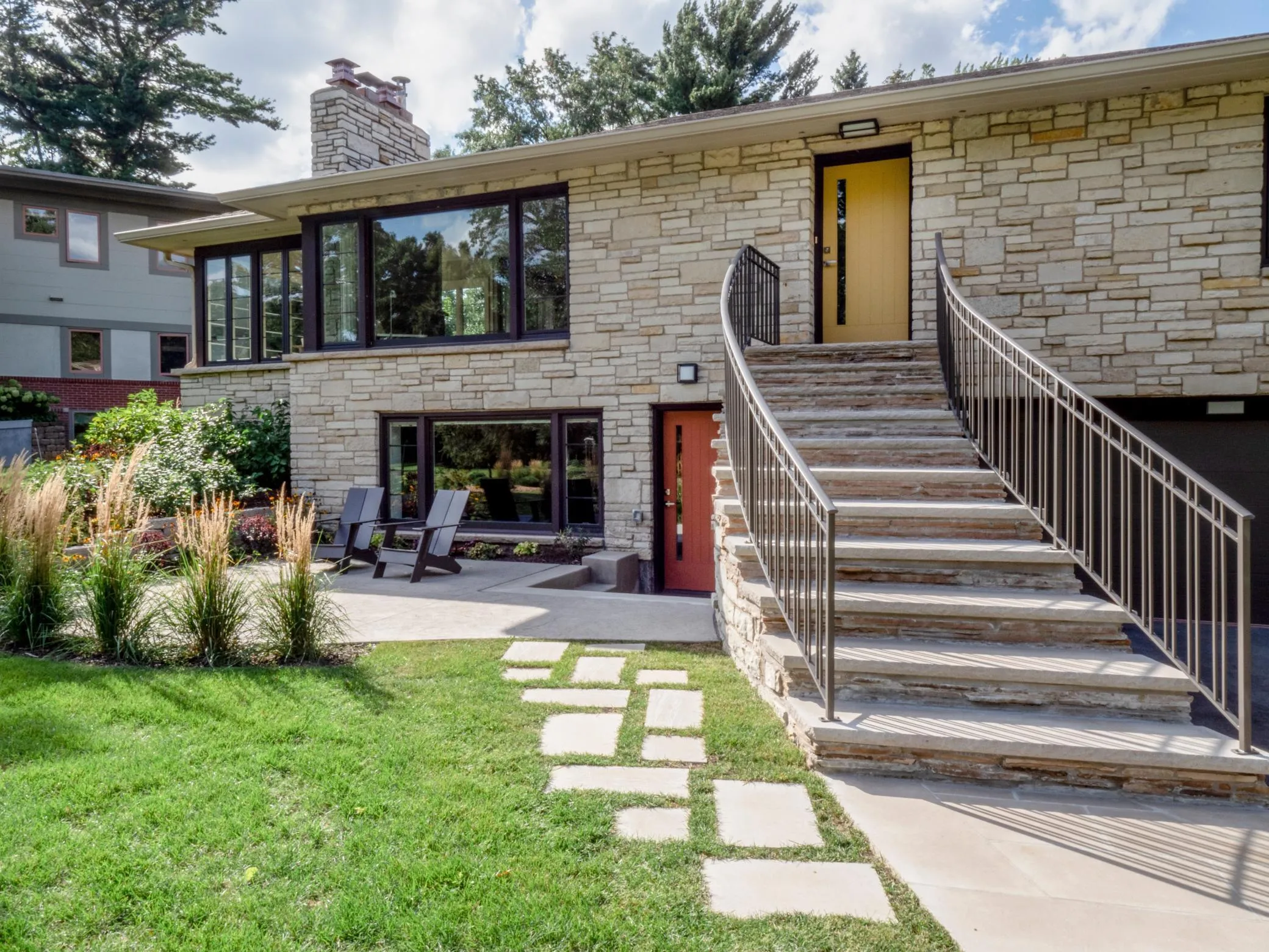 Perfection! Sparkling Mid-Century Modern walkout rambler across the street from Sweeney Lake and $2M+ properties. Current owner has made this stylish, totally renovated home even better. Full stone and brick exterior with sweeping limestone staircase, private patios front and rear, and beautiful trees and landscaping with irrigation. Open, sun-drenched, and top quality throughout, including new roof and Hardie soffits and facia, all Marvin windows, gorgeous white oak floors, two floor-to-ceiling stone fireplaces with gas inserts and lush views from every room. Stainless/quartz chef’s kitchen opens to a shimmering dining room with windows all around. Enjoy modern glass tiles, designer lighting and fixtures throughout. Two delightful baths with walk-in showers; large owner’s bedroom has corner windows and dressing built-ins. The walkout level family/media room with window wall exits to the front patio and sweeping lawn. A 2nd kitchen/entertaining bar, and a large mud room with laundry completes the picture. Remarkable, high-demand neighborhood boasts great dog-walking, easy access to kayak and canoe on Sweeney Lake, bike, hike & ski Wirth Park!