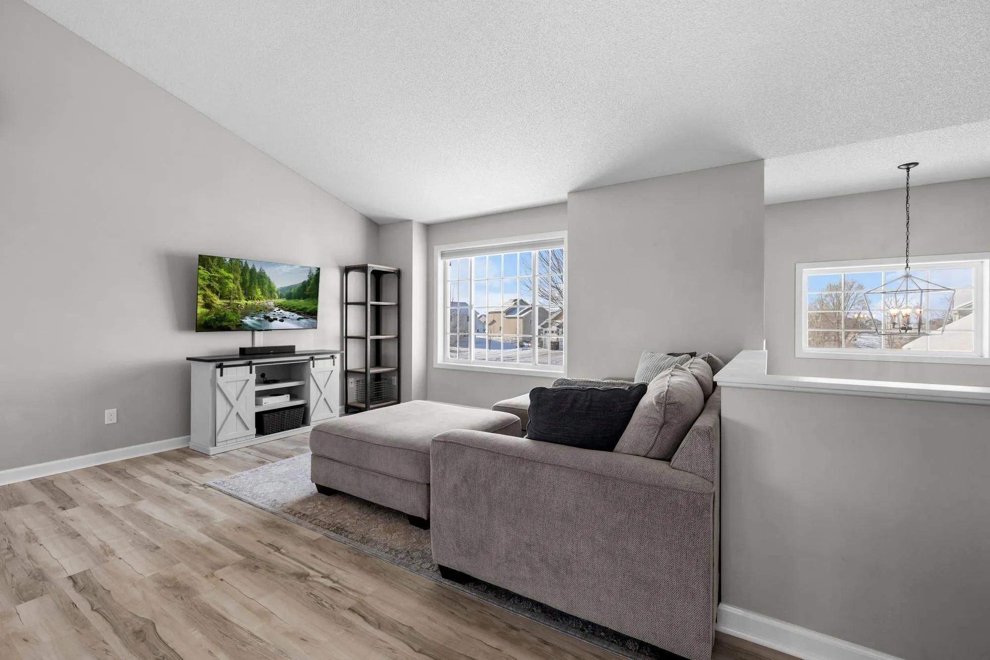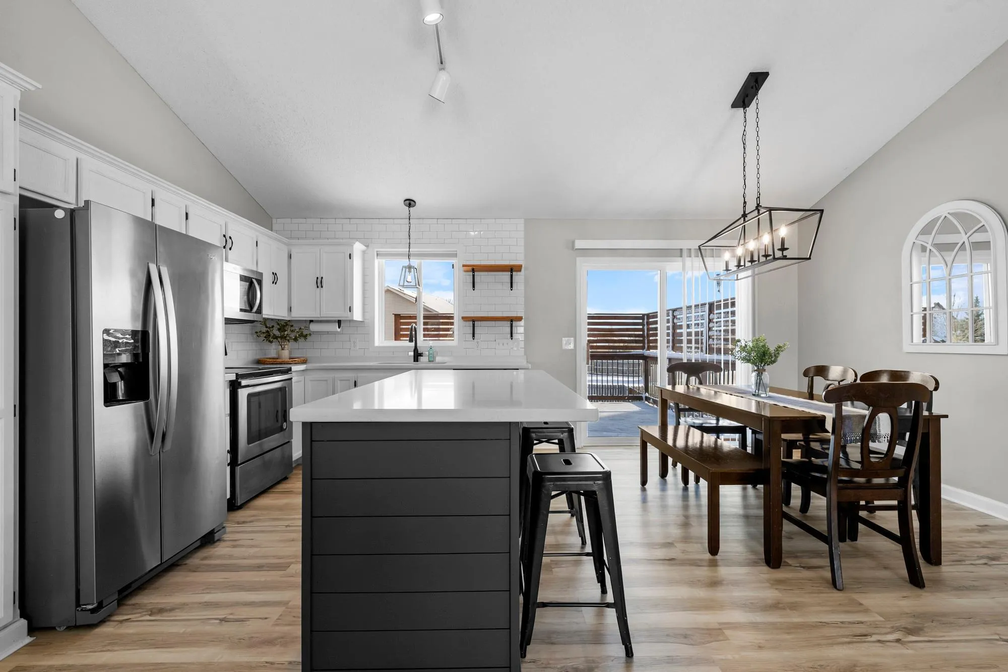 Beautifully updated and move-in ready, this 4-bed, 2-bath home in Big Lake offers modern finishes and fantastic indoor/outdoor living. The kitchen features quartz countertops, upgraded stainless steel appliances, a subway tile backsplash, and luxury vinyl plank flooring that flows into the dining and living areas. The cozy ship-lapped electric fireplace with mantle adds the perfect touch of charm.