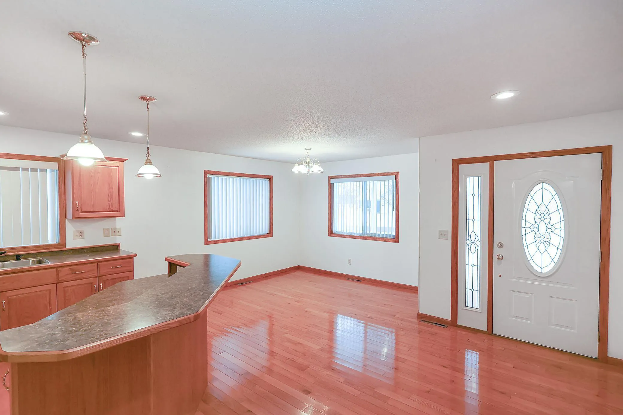 This spacious 4-bed, 3-bath rambler offers over 2,600 finished square feet and an oversized 3 stall insulated and heated garage. Enjoy an open-concept layout with a large kitchen and dining area featuring recessed lighting, raised oak panel cabinets, a two-level center island, and real hardwood floors. The vaulted living room flows seamlessly into the impressive 14×16 three-season sunroom, adding even more room to relax and entertain. The main level includes two bedrooms, a full bath, and a convenient laundry room with a sink—washer and dryer included. The spacious primary suite features a ¾ bath with dual sinks and a generous walk-in closet. The lower level includes two additional bedrooms, a full bath, a bright family room with gas fireplace, and abundant storage including a large mechanical room. One of the standout features is the oversized 3-stall heated and insulated garage, offering 948 sq ft with 8-ft doors—ideal for storage, hobbies, or extra vehicles. The nearly ½-acre lot provides a wonderful backyard for gardening or outdoor activities. With a covered front porch, maintenance-free siding, soffit, fascia and gutters, and a quiet yet convenient location, this home offers comfort, space, and functionality in every direction.