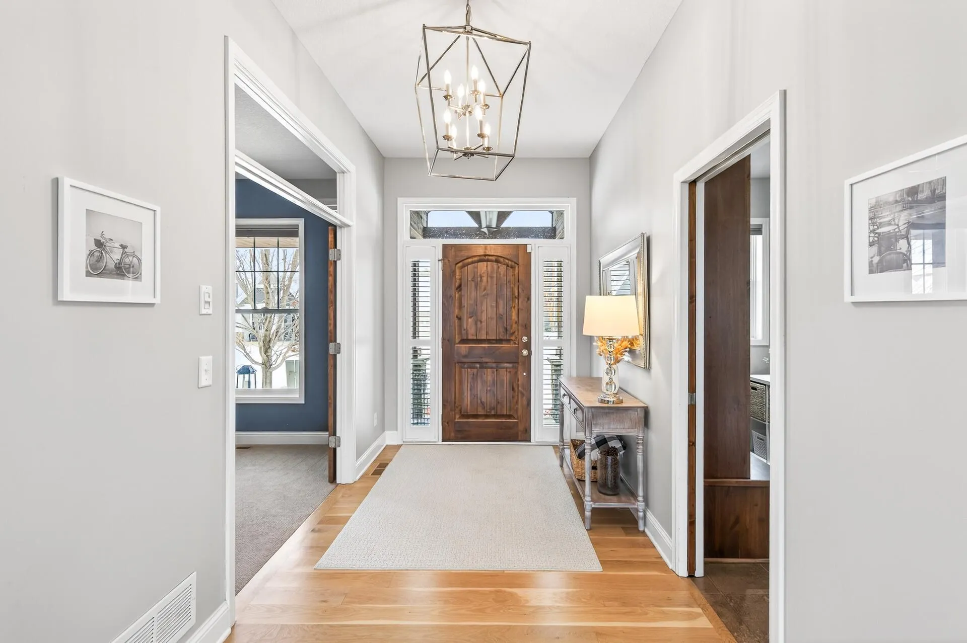 Stunning neighborhood, gorgeous home, award-winning Wayzata school district! This Creek Hill Custom Homes build in Plymouth’s Terra Vista neighborhood combines the feel of new construction with the elevated character only a fully customized home can offer. Set on a .27-acre lot just steps from the neighborhood park, pool, and clubhouse, this home delivers style, comfort, and space with a smart floor plan and exceptional features. Inside, you’ll find an open floor plan filled with natural light, wood flooring, classic white enameled trim, and beautiful knotty alder doors. Every finish feels intentional and timeless. The kitchen is a standout gathering space, with white cabinetry, granite countertops, tile backsplash, stainless steel appliances, a large center island with storage and a walk-in pantry. It flows seamlessly into the dining area and living room, where a gas fireplace with stone-surround and built-ins creates a warm space that you won’t want to leave. Additional main-level highlights include a private office with custom built-ins, a mudroom with a built-in bench and cubbies, a drop-zone, walk-in closet, and the conveniently located half bath. Upstairs has an exceptional layout with four bedrooms on one level—including a spacious primary suite with tray ceiling, large walk-in closet with custom organizers, and a beautiful ensuite bath featuring a double-bowl vanity, fully tiled walk-in shower, and separate jetted tub. A princess or prince suite with ensuite bathroom and walk-in closet and a Jack-and-Jill bath that serves two additional bedrooms provides plenty of space for everyone. The second-floor laundry room is both stylish and functional with custom shelving, built-in sink, and cabinetry. The bonus room is a true flex space, perfect for a playroom, game room, home office, or cozy lounge. The fully finished lower level extends your living and entertaining options with a large family room anchored by a second stone-surround gas fireplace and built-ins, stylish wet bar with refrigerator and quartz countertops, plus an additional bedroom, bathroom, exercise room, and storage. The exterior is already equipped for easy outdoor living with a full black aluminum fence, Rainbow play set, a front porch, composite deck, and a stamped-concrete lower patio. Notable upgrades throughout include Andersen windows, Hunter Douglas top-down window treatments, zoned HVAC with Ecobee thermostats, furnace humidifier, air-to-air exchanger, high-capacity water heater, water softener, Sonos indoor/outdoor sound system, and custom organizers in all closets. The insulated 3-car garage is fully finished with epoxy flooring, making it as functional as it is pristine. If you’re seeking a home that delivers luxury, warmth, and exceptional craftsmanship—every detail already perfected—this Plymouth home will stand out at the top of your list.