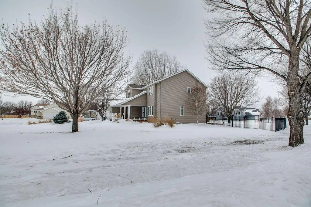 No Specials! This beautiful two-story home sits on nearly half an acre at a corner lot near Meadows Golf Course in South Moorhead. Looking for storage? This place is FULLY loaded on every floor! It offers 5 bedrooms plus a main-floor office, 4 bathrooms, and a 3-stall garage, with recent updates including new AC and furnace, carpet, paint, and main-floor windows. The main floor features two living rooms and a spacious kitchen, while the primary suite includes a walk-in closet and ensuite with tiled ¾ shower and soaking tub. One of the basement bedrooms is currently used as a gym, showcasing durable flooring! Cozy fireplace & plush carpet give the downstairs a relaxing feel. Outside, the massive fully fenced backyard provides ample room for recreation and gatherings. See documents tab for full list of improvements!
